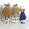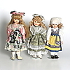 Huvud och händer i porslin, stoppade kroppar, en docka med Sverigedräkt. Höjd ca 40 - 44 cm.