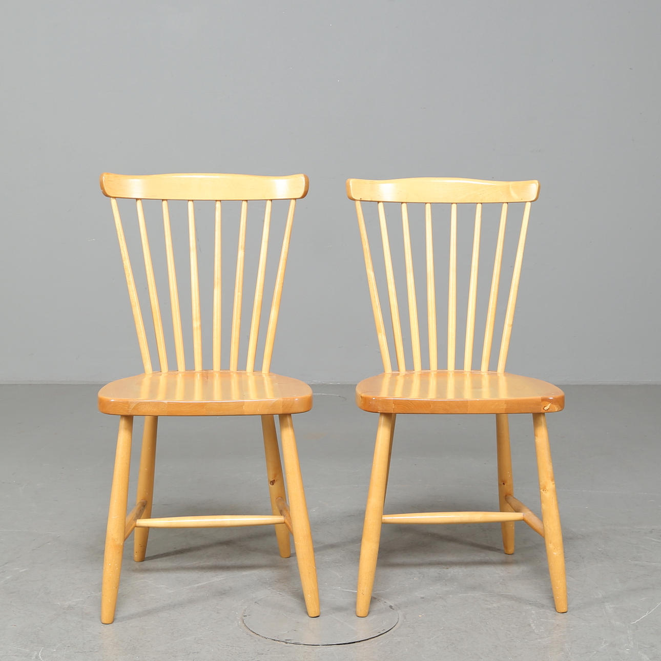 Två pinnstolar i massiv björk, omärkta.