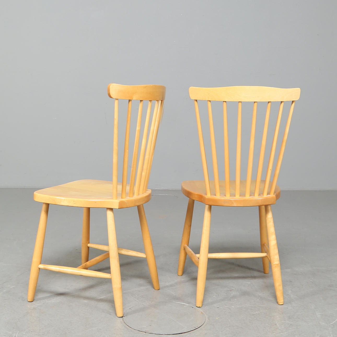 STOLAR, två stycken i björk, 1900-talets andra hälft.