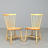 692801. STOLAR, två stycken i björk, 1900-talets andra hälft.