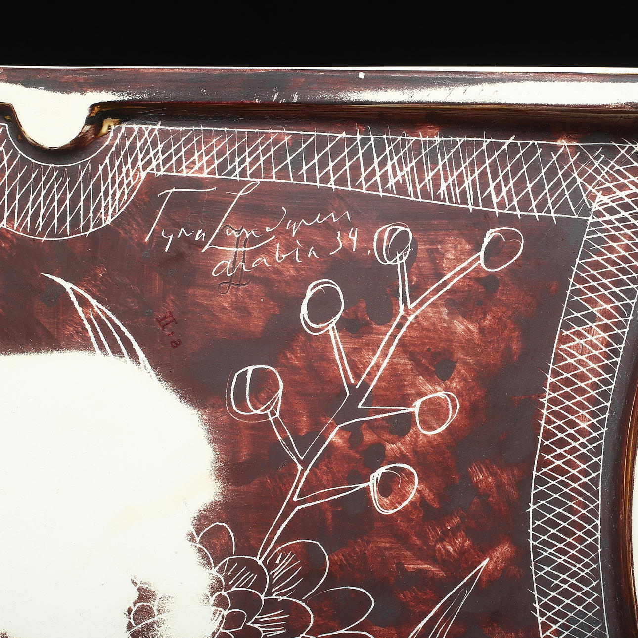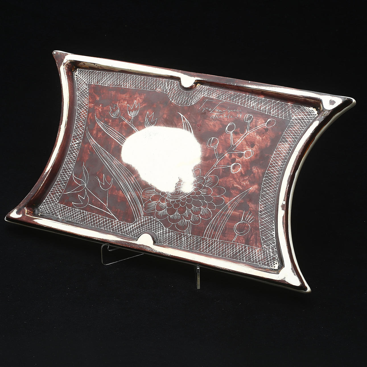 TYRA LUNDGREN. bricka, stengods, Arabia, 1934.