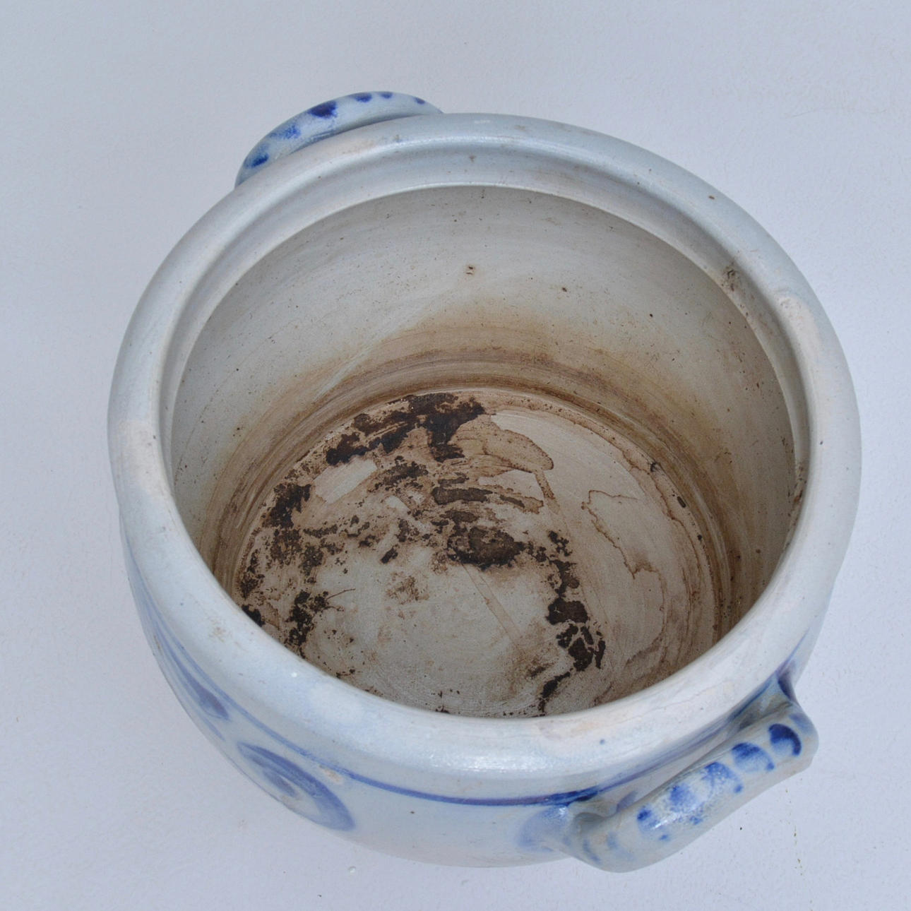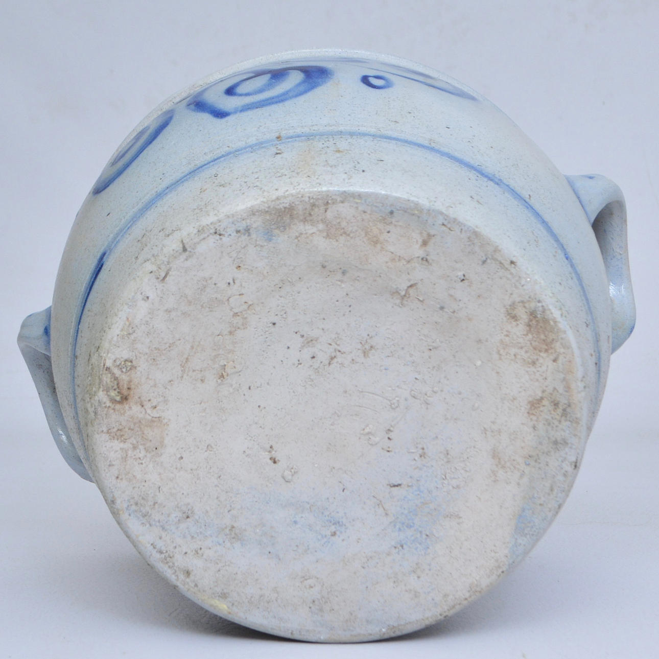 Saltglaserat, dekor av blå blommor.