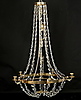 694956. KRISTALLLKRONA, gulmetall med prismor, modern tillverkning.