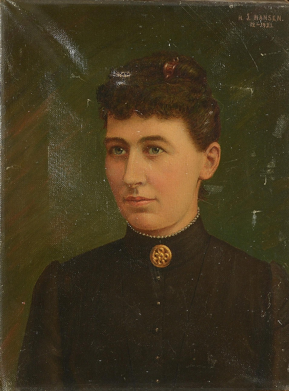 Kvinnoporträtt, signerad och daterad 1921, 31x24 cm.