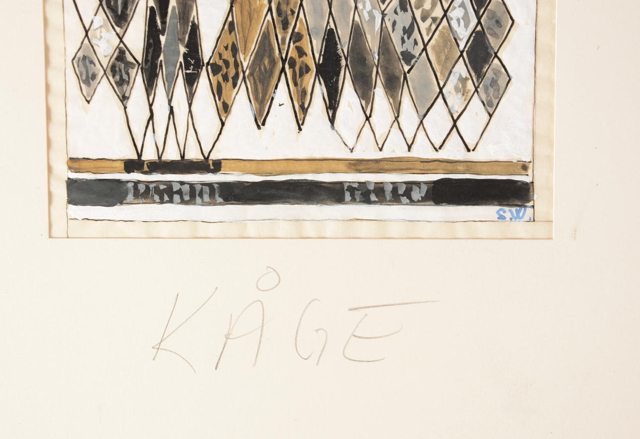Skiss till textil. Signerad. Prov Wilhelm Kåge. Även märkt Kåge i blyerts, 26x15 cm.