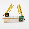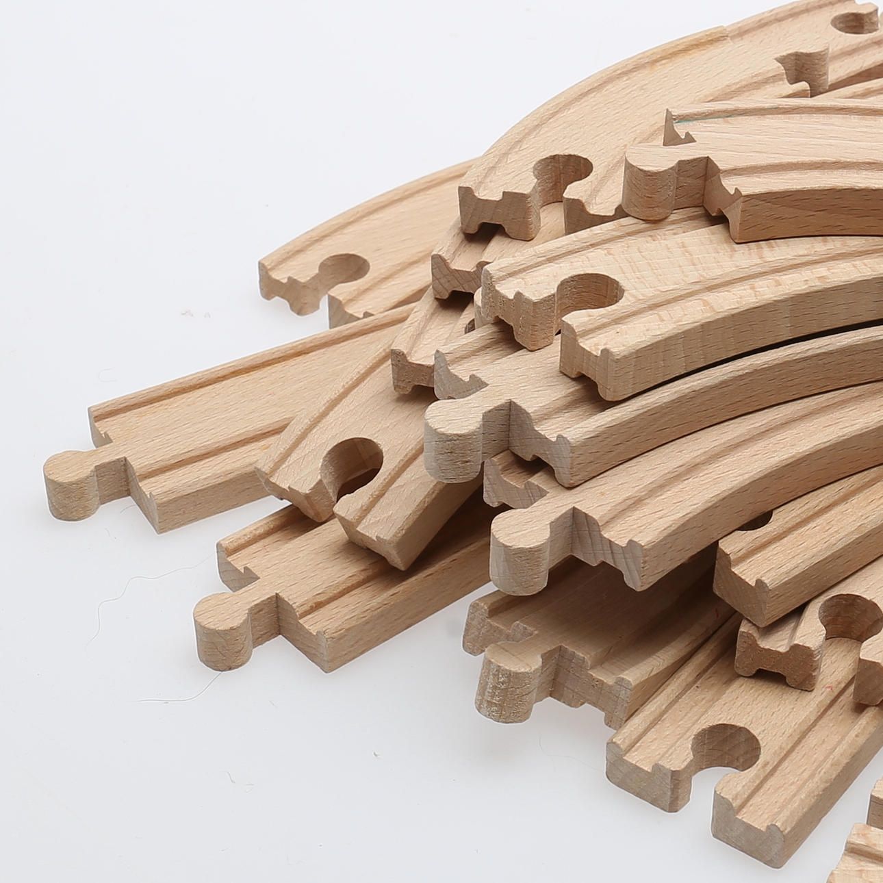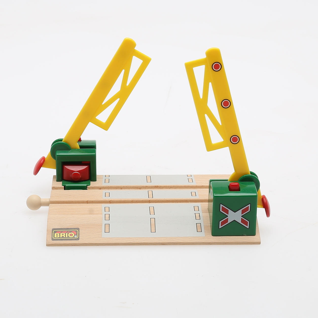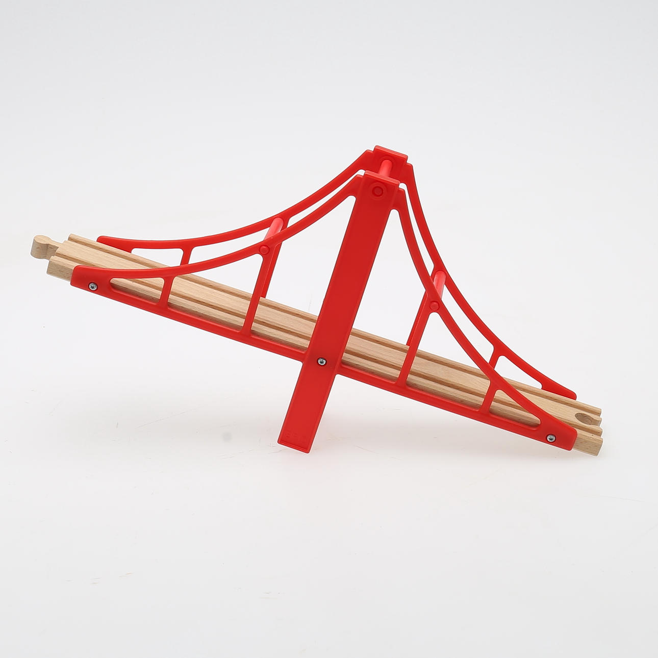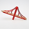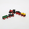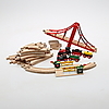 Tågräls, samt lok och vagnar. Järnvägsbro, längd 38, höjd9,5 cm. Lok,rött, längd 8,5 cm. I originalkartong.