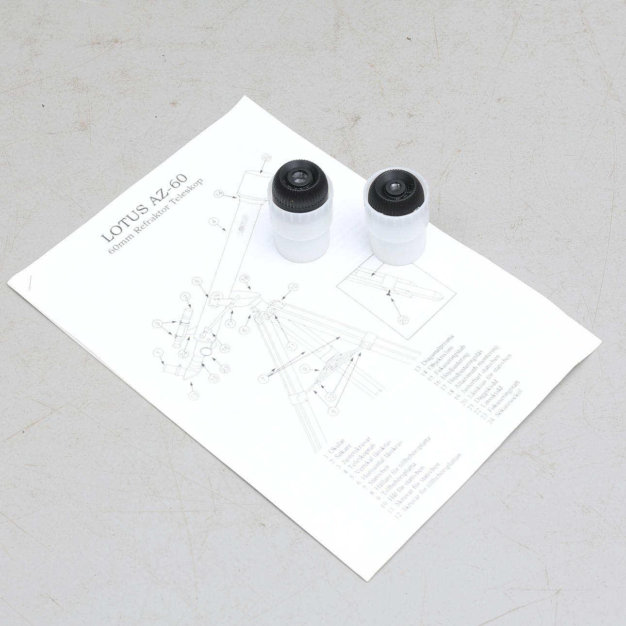 Med två okular 1,25": H 20mm (35x) samt 12,5mm (56x).