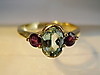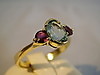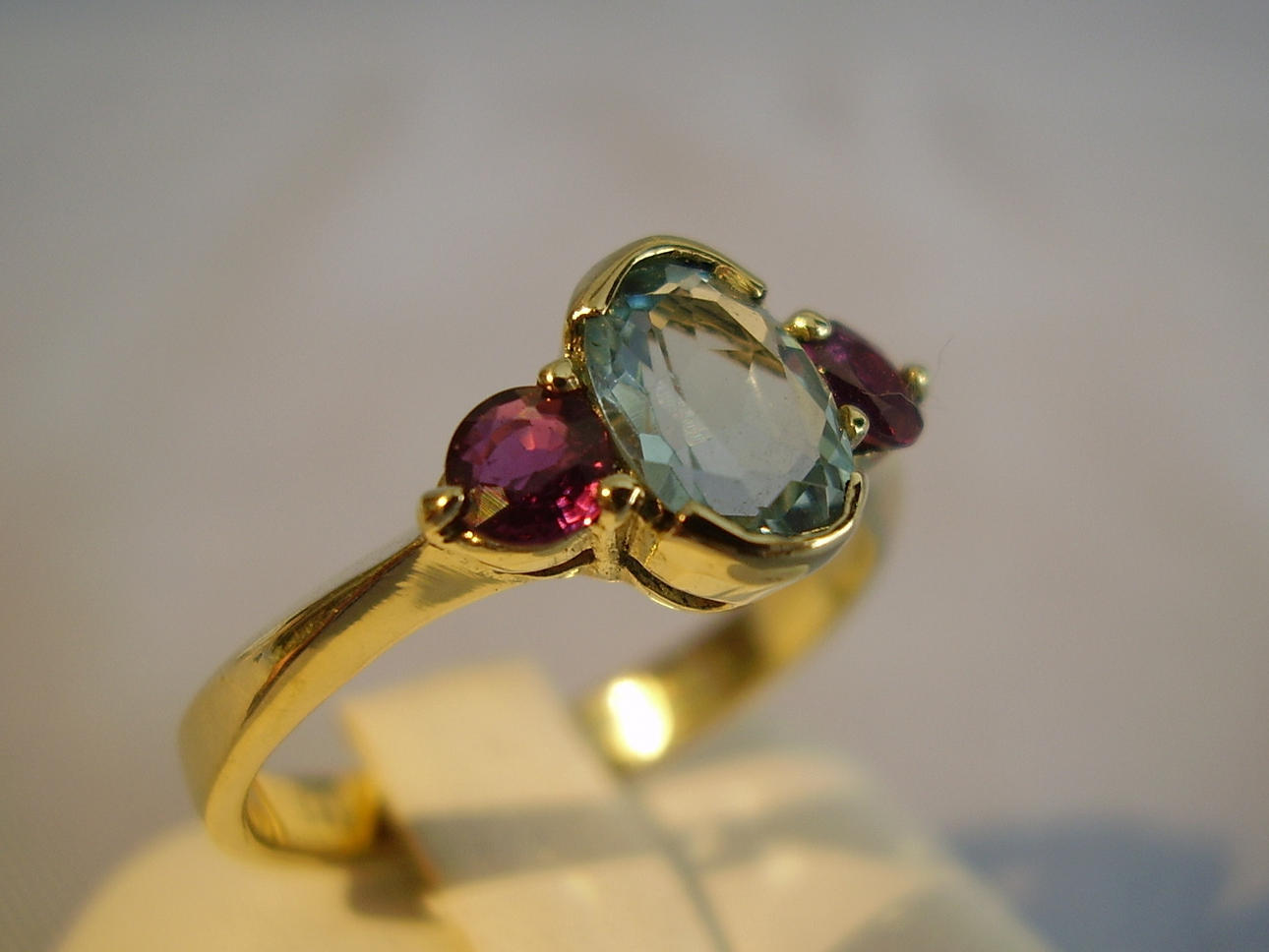 702620. RUBIN - BLÅ TOPAS RING 14 KARAT.