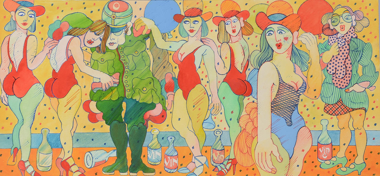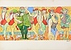 Komposition med kvinnor samt man i uniform, 24x51 cm.