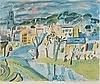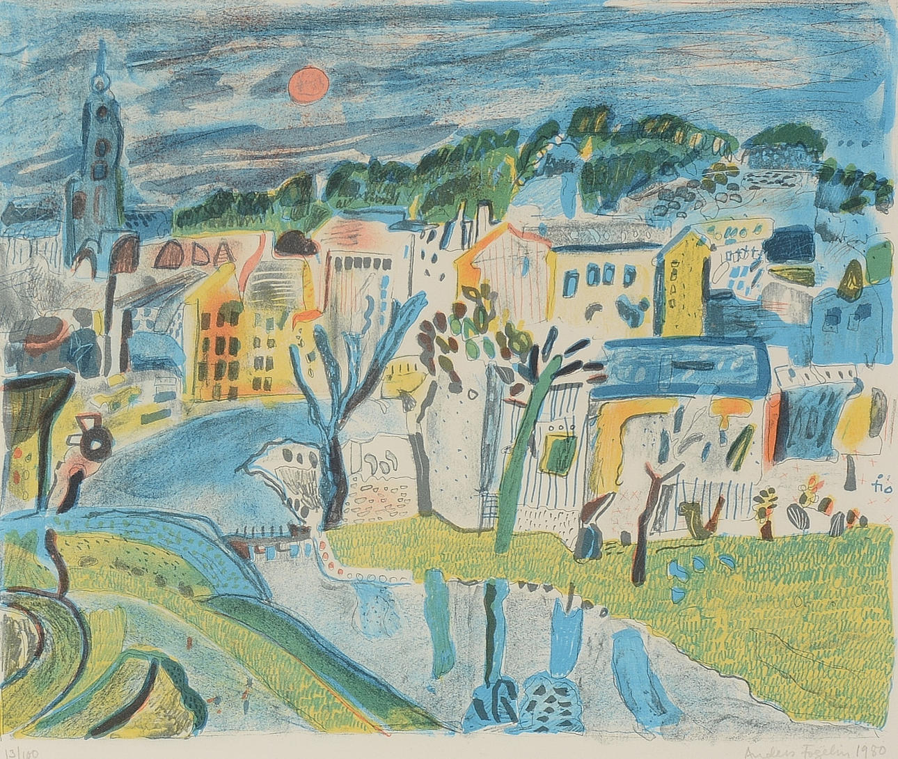 Stadsbild, signerad, daterad 1980 och numrerad 13/100, 36x44 cm.