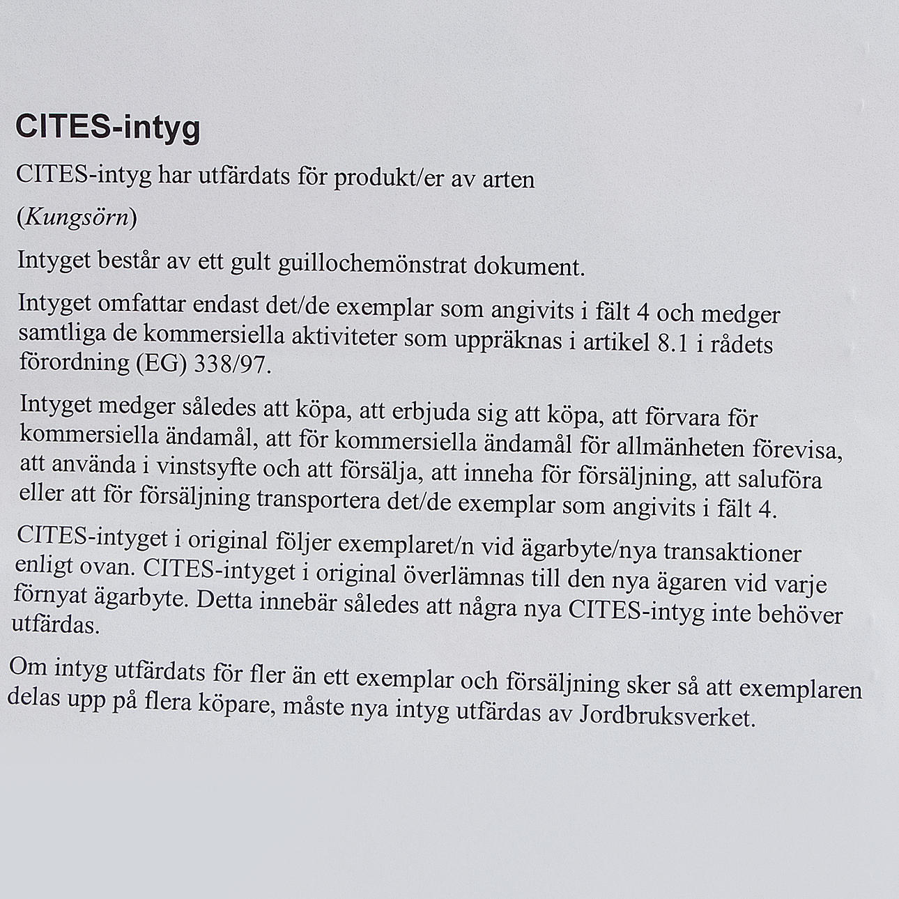 CITES-intyg medföljer.