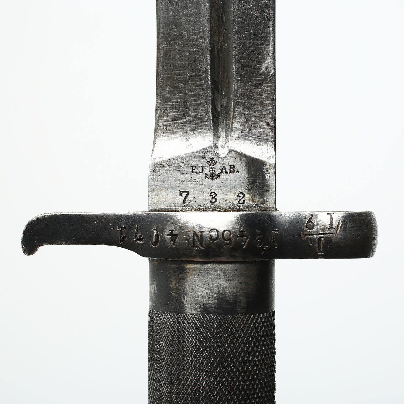 Bladet märkt EJ AB, längd inklusive balja ca 35 cm.