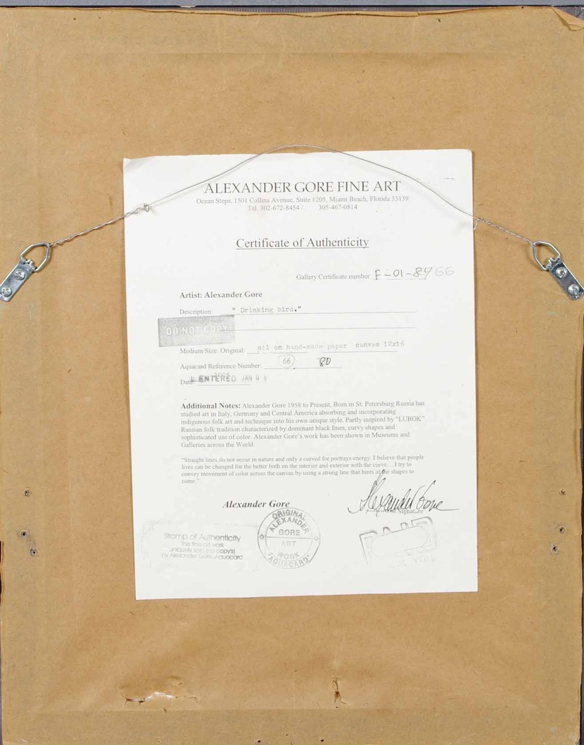 71066. ALEXANDER GORE. "Drinking bird", olja på duk.
