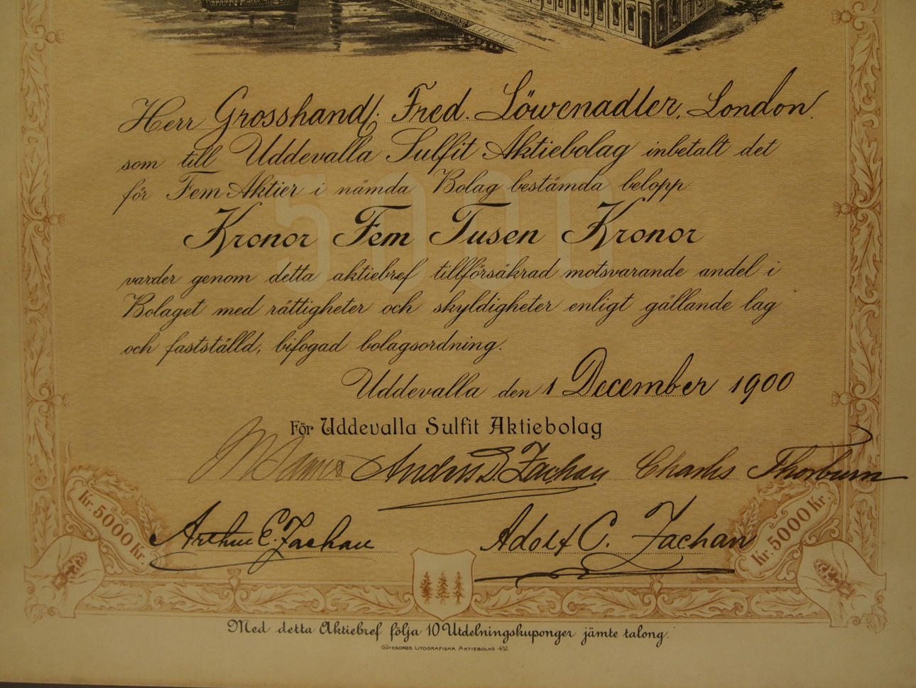 AKTIEBREV UDDEVALLA SULFIT AKTIEBOLAG.