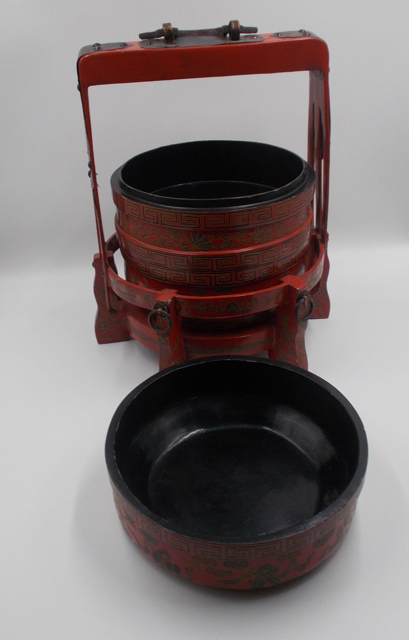 716213. BAMBU RÖD LACK SERVIS PORSLIN 19TH CENTURY.