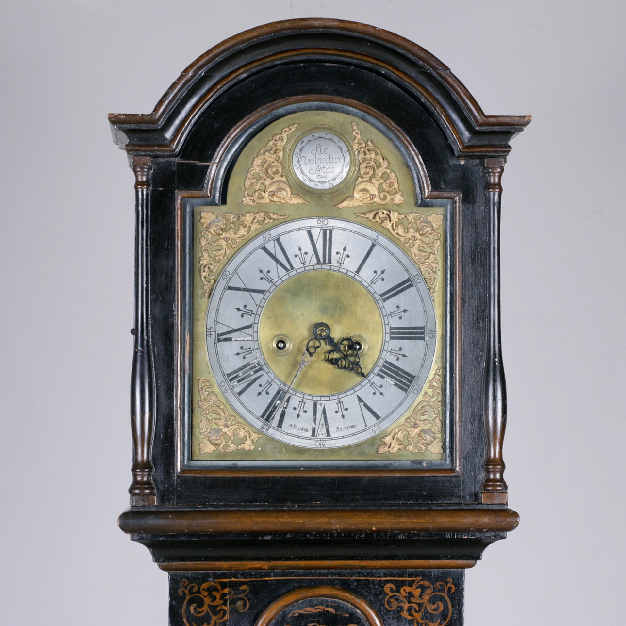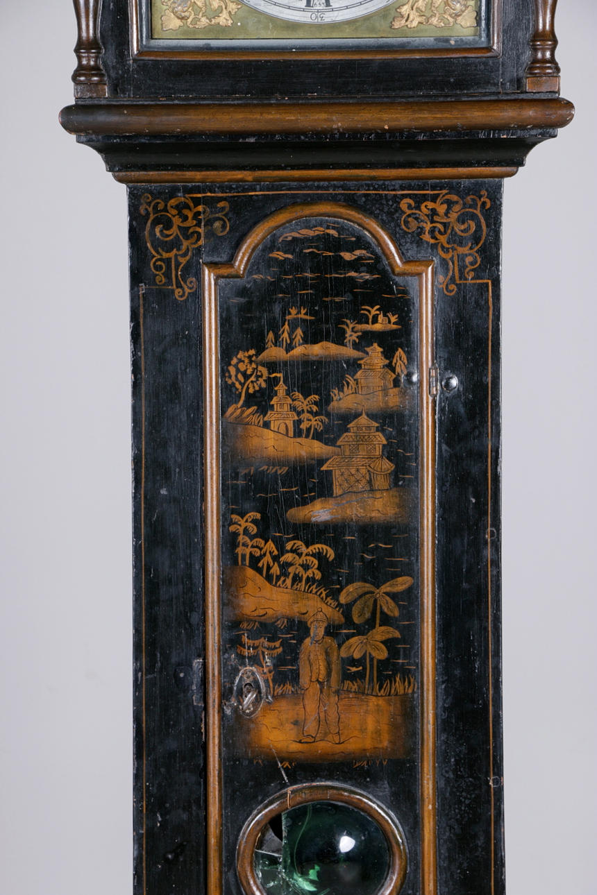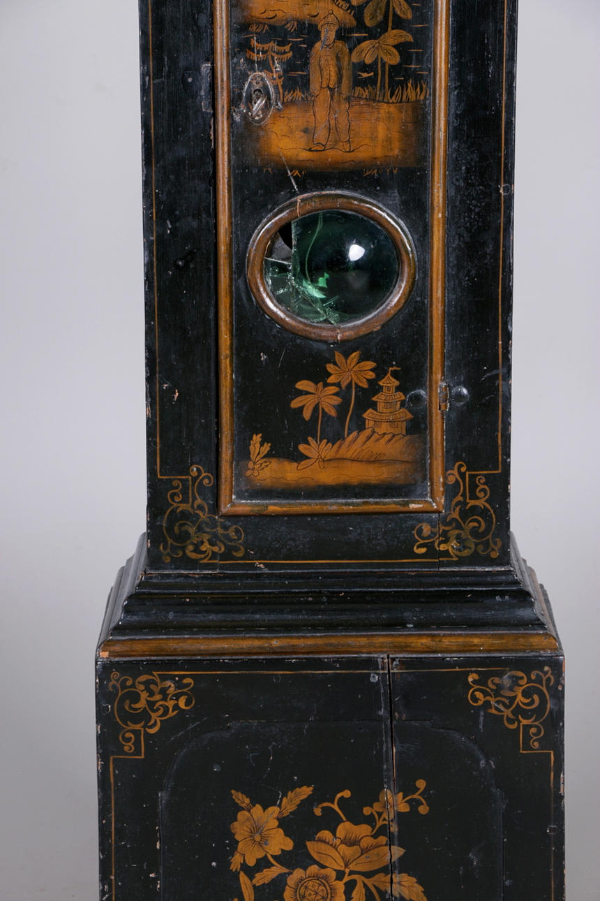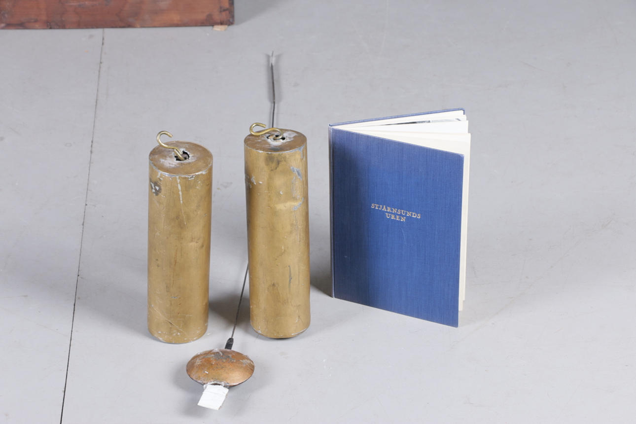 Urtavlan märkt SIC VOLVITUR AETAS samt A:POLHAMMAR, ST:SUND. Dekor av Kineseri, 2 inkapslade lod, pendel samt uppvridningsnyckel ingår. Ingår gör även en bok "Stjärnsundsuren", Sten Lundwall, Stockholm, 1949