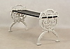 Bemålade metallgavlar samt sits av bemålade träribbor, längd 100 cm, bredd 40 cm, höjd 51 cm.