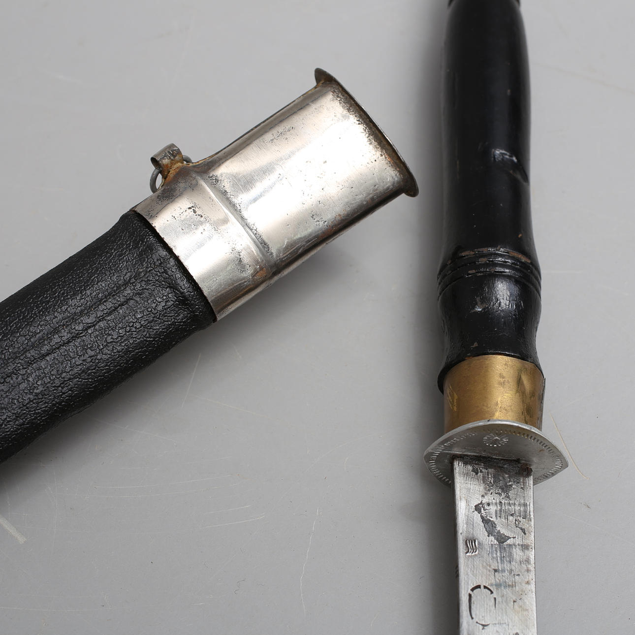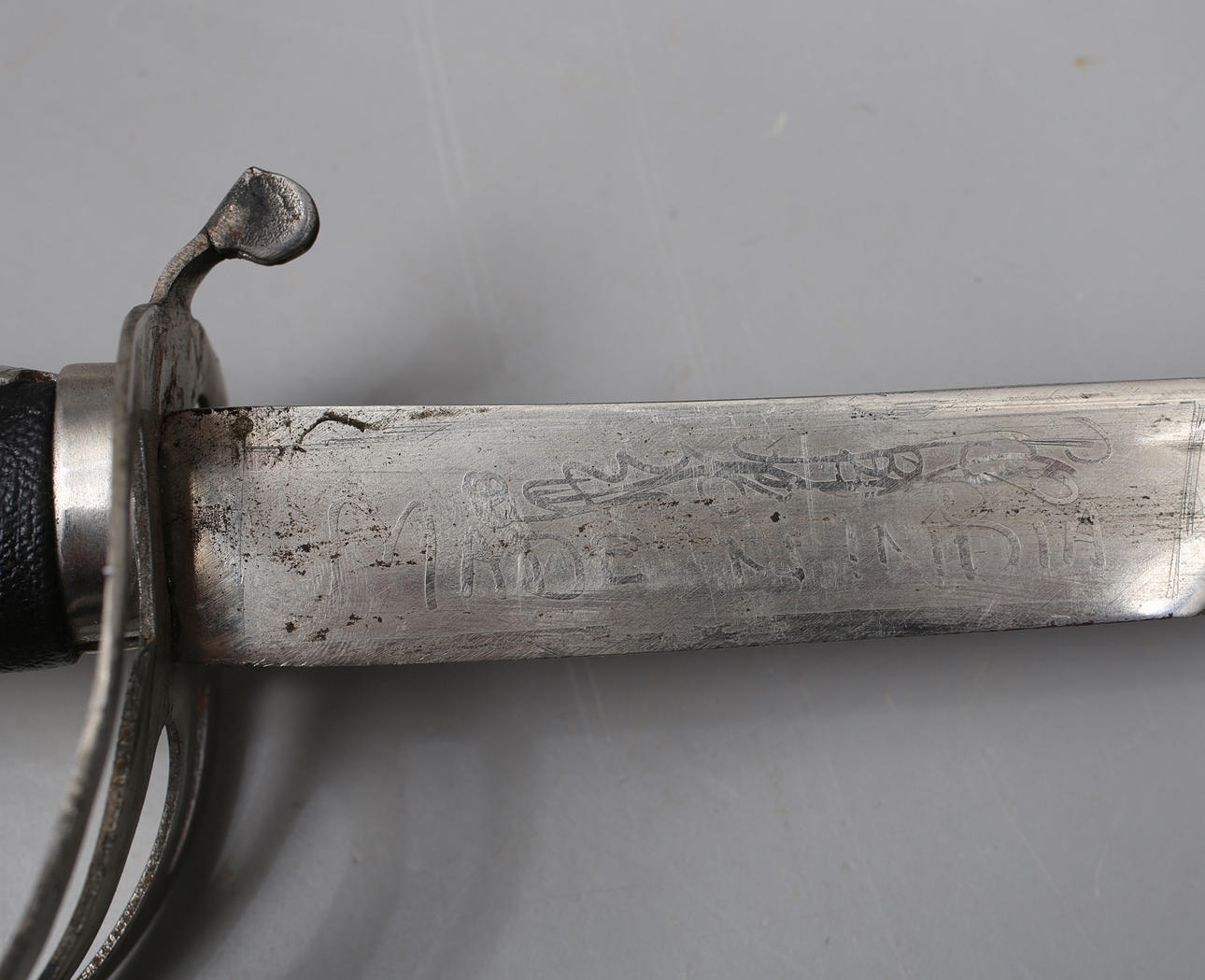 Slitage, skador, mutter i änden på sabel.