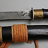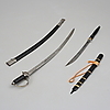 Sabel längd 90 cm. Kniv längd 62 cm med balja av trä.