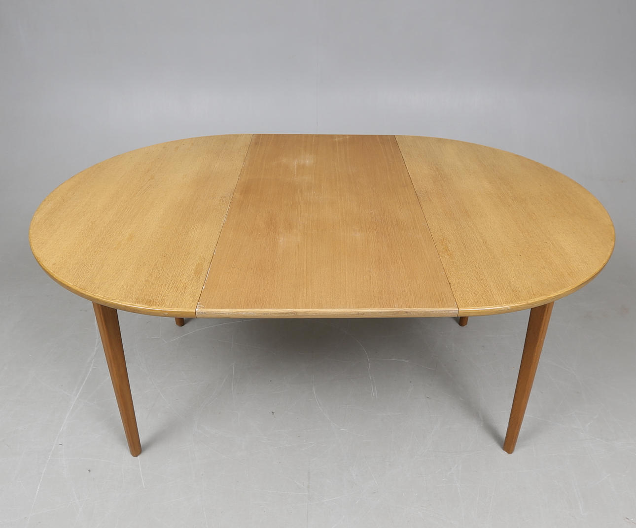 Ek. Brickmärkt. Diameter ca. 110, höjd 74 cm. Skiva, längd ca. 55 cm.