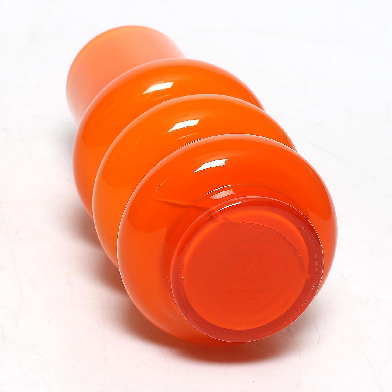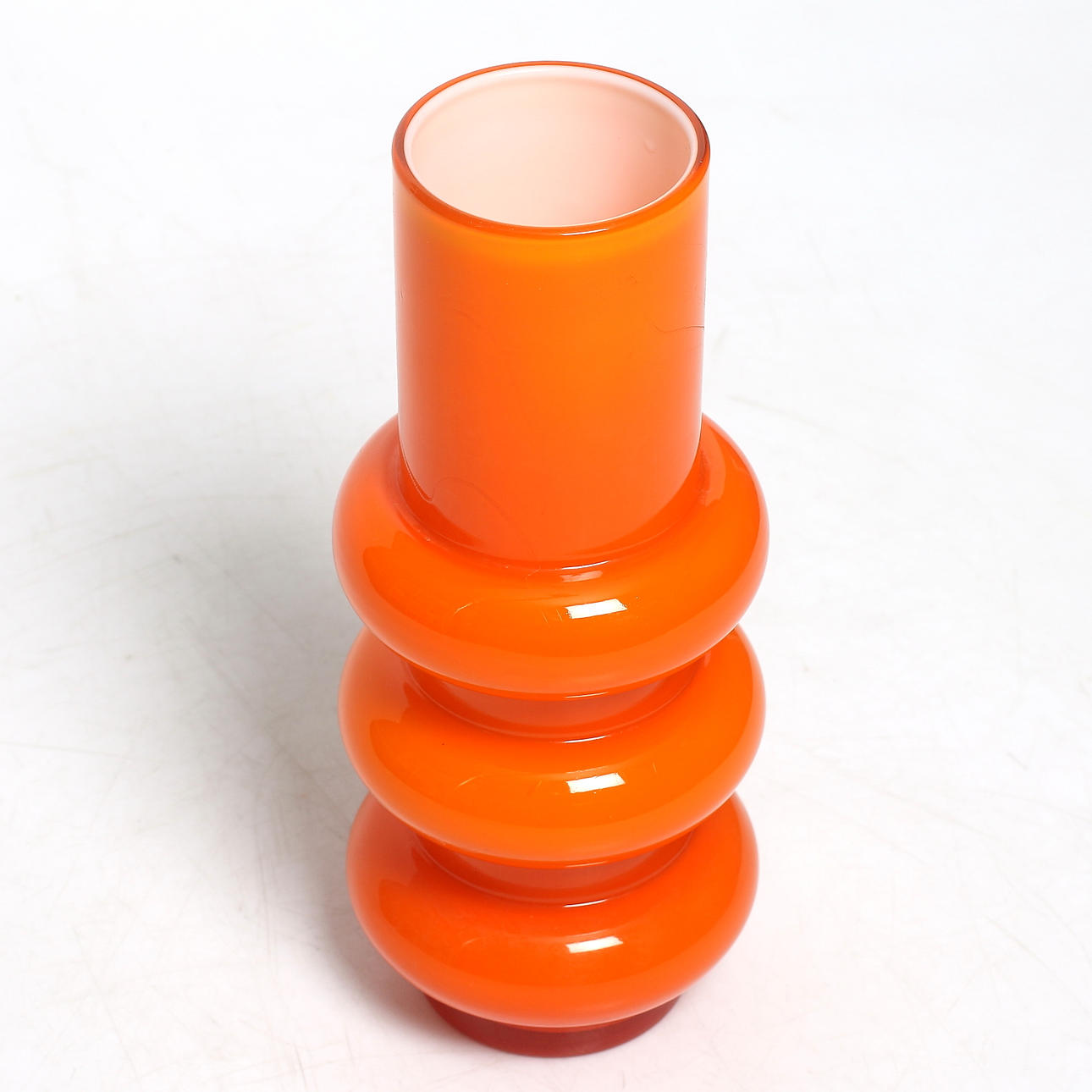 Orange glasmassa med vitt underfång. Höjd 27 cm.