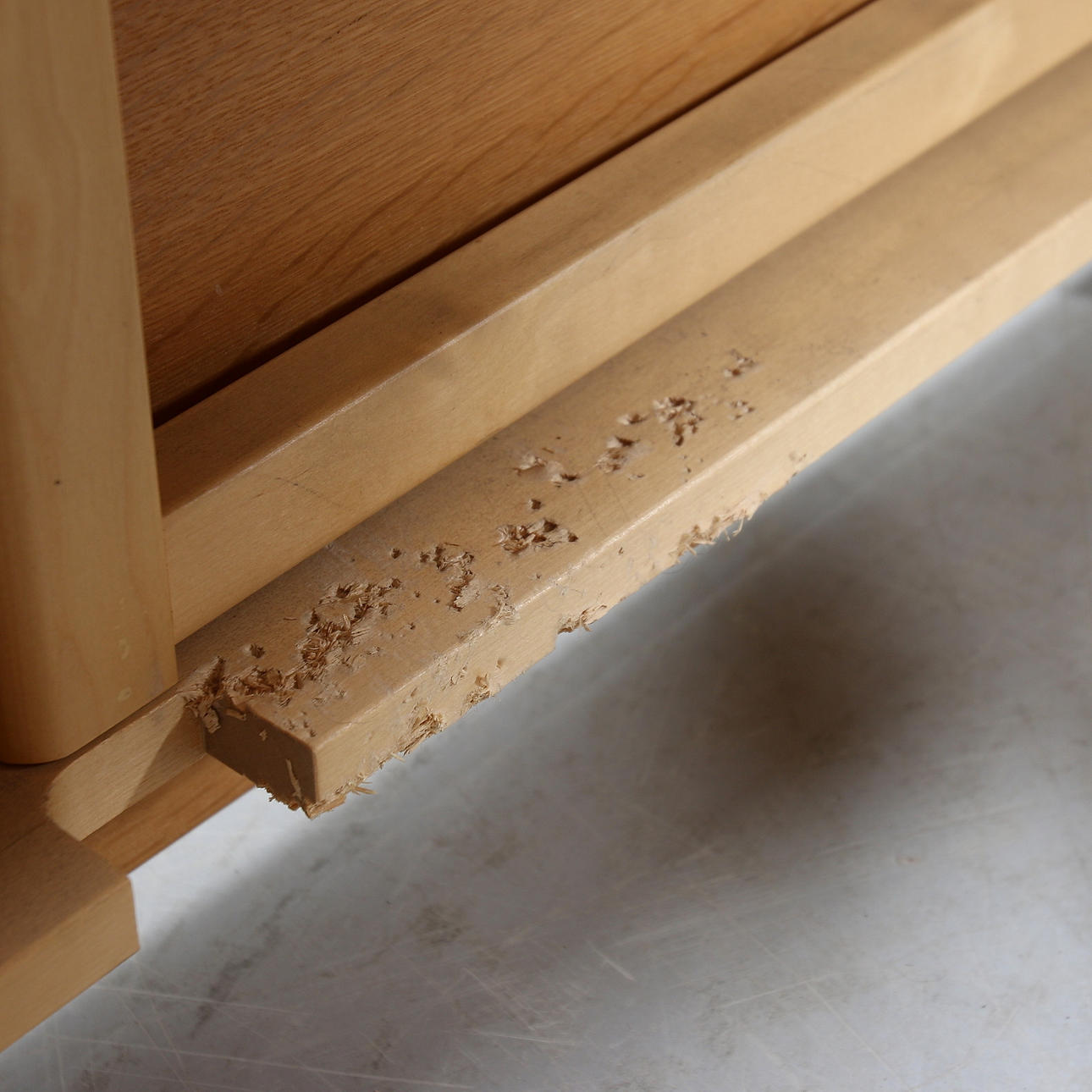 Bruksslitage, repor, fläck på skivan, ett stag på underredet med skador.