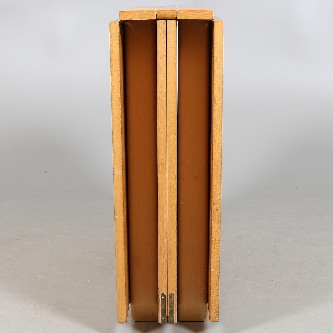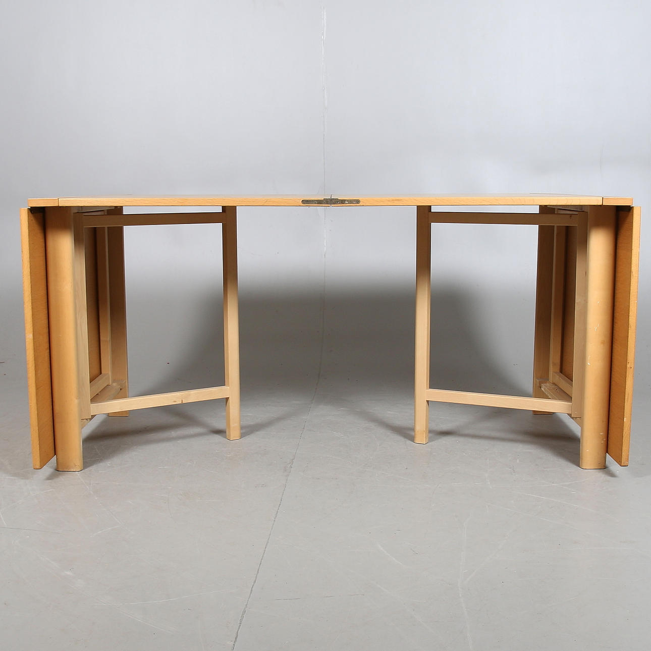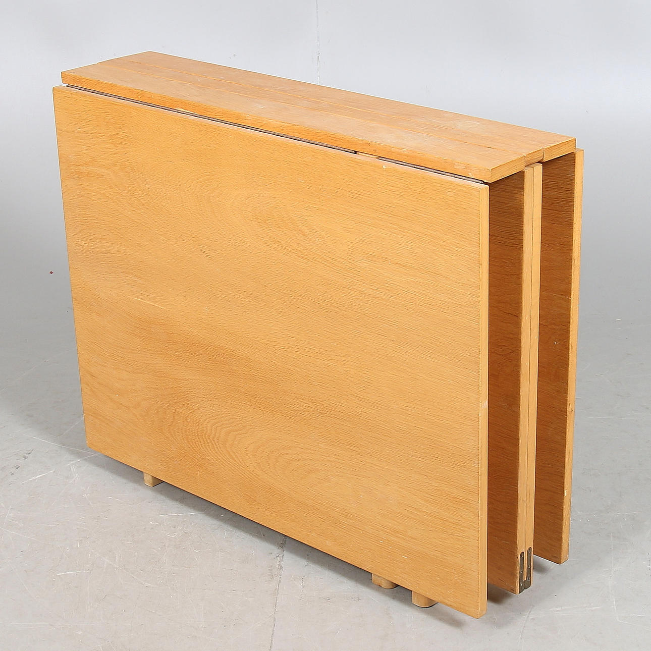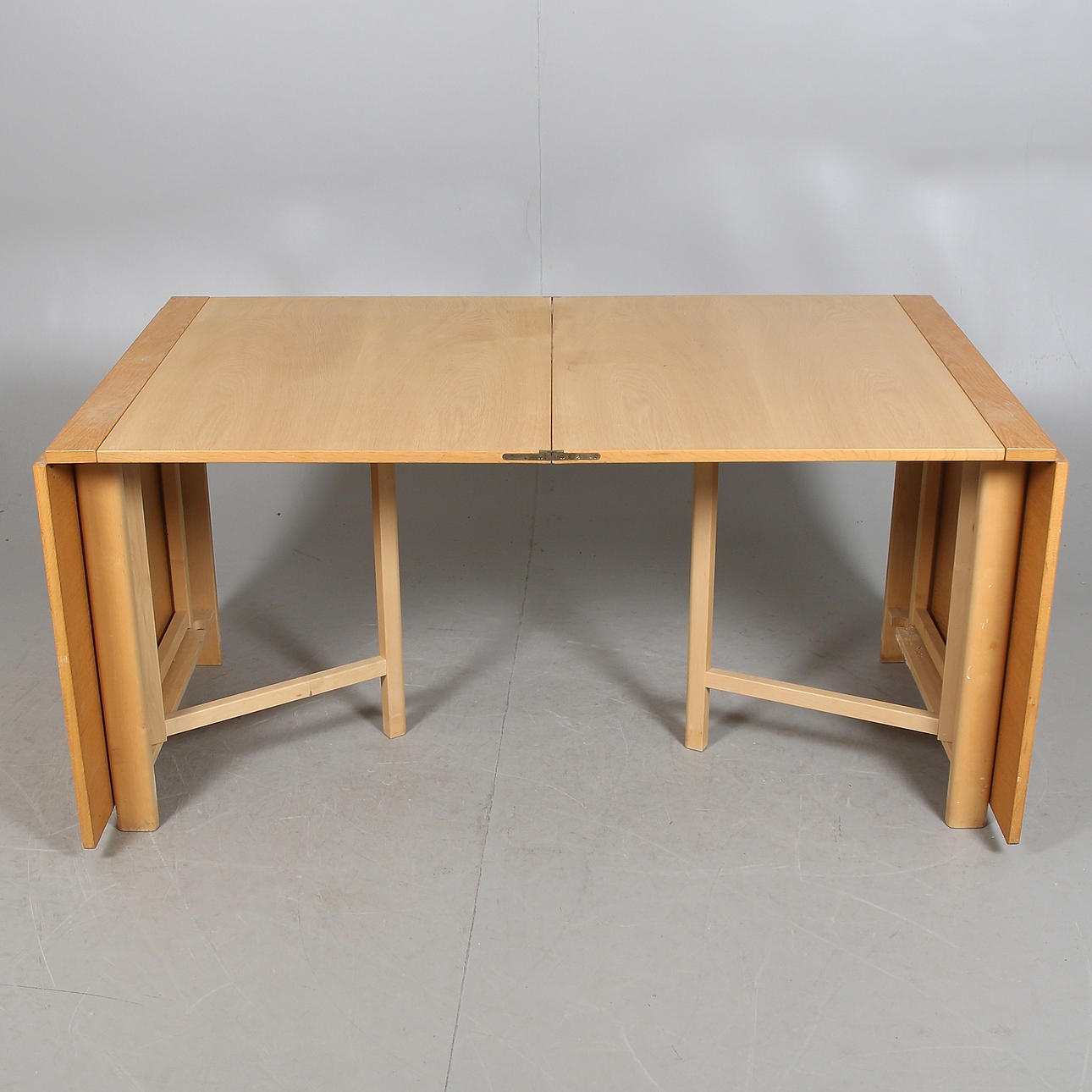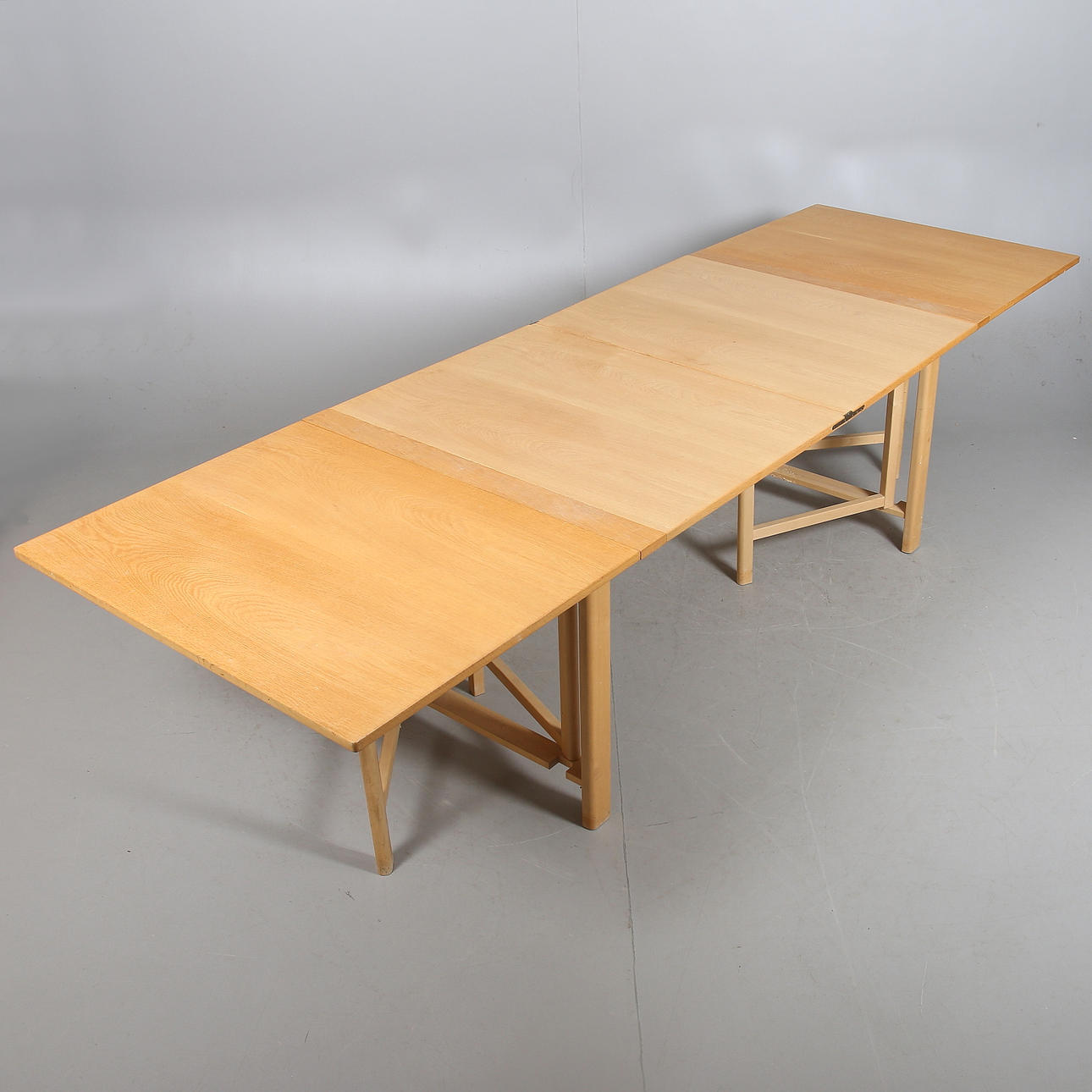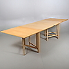 Ekfanérad skiva, underrede i bok. Brännmärkt BRUNO MATHSSON DESIGN MADE IN SWEDEN. Längd 279, bredd 90, höjd 72 cm.
