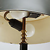 Fot i gulmetall och trä, grön plåtskärm, höjd ca 55 cm.