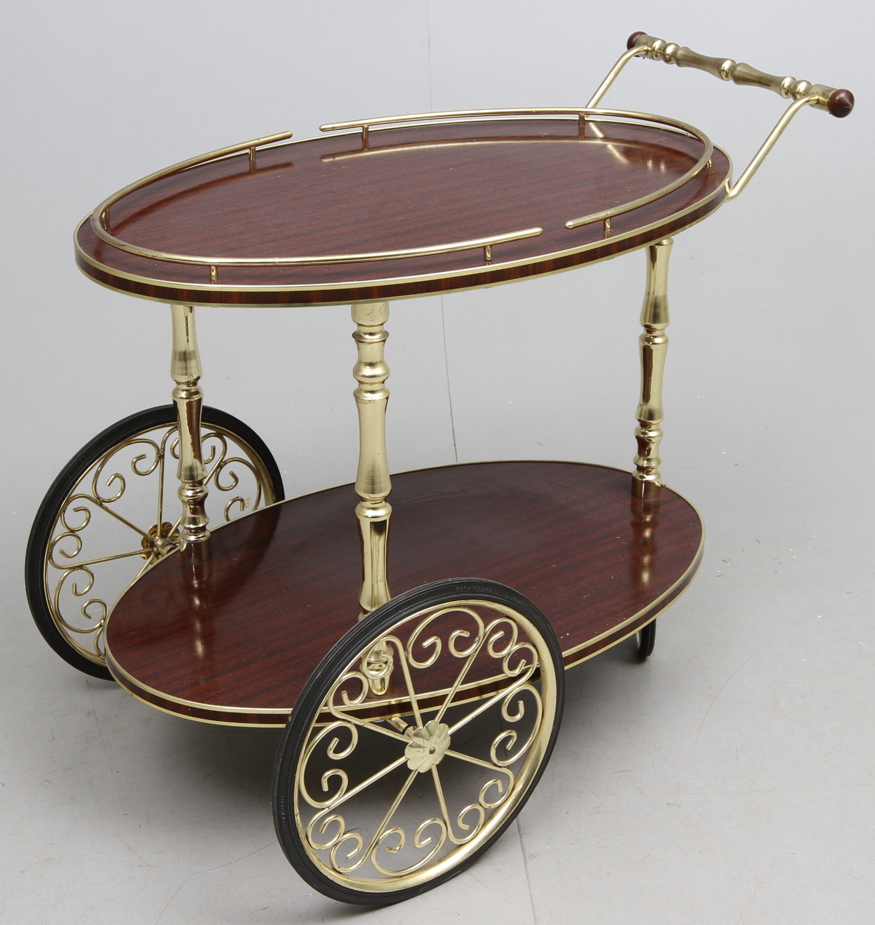 73090. SERVERINGSVAGN, mässing/trä, 1900 tal.