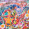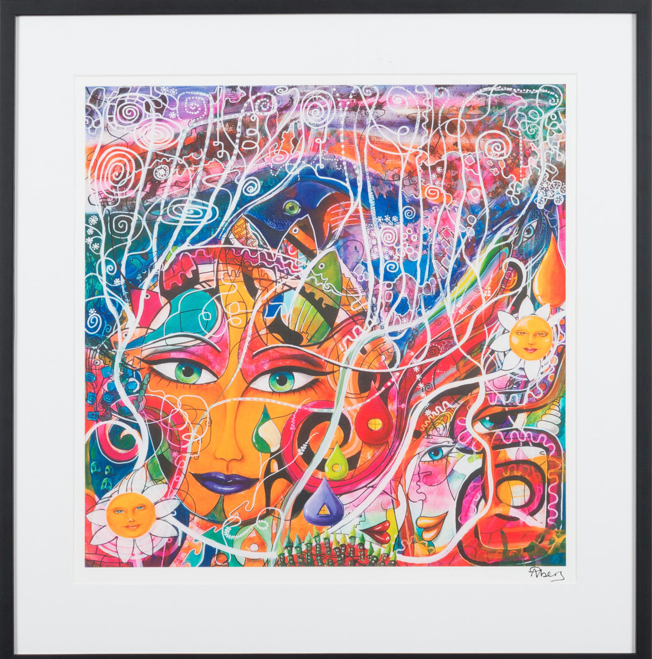 733754. DAVID ÅBERG. EFTER. Komposition med kvinnoansikte, grafiskt blad.
