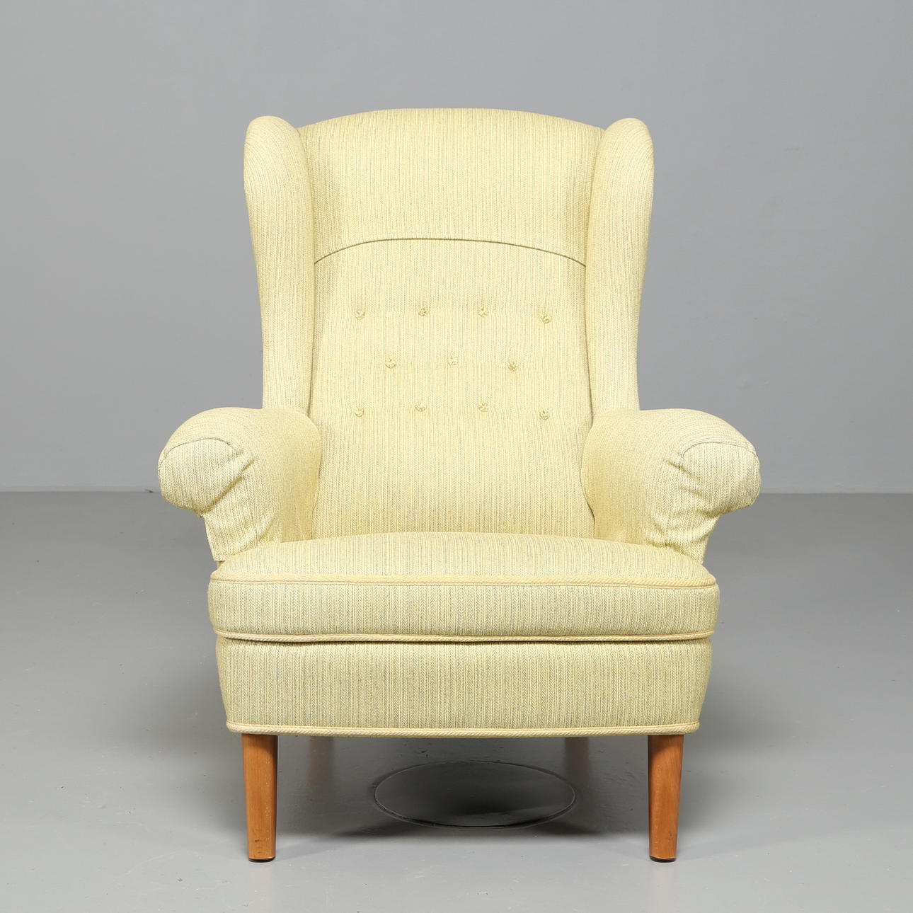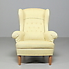 734097. CARL MALMSTEN. Fåtölj "Häggbom" klädd i gröngul ulltextil.