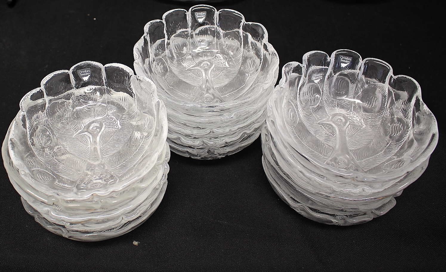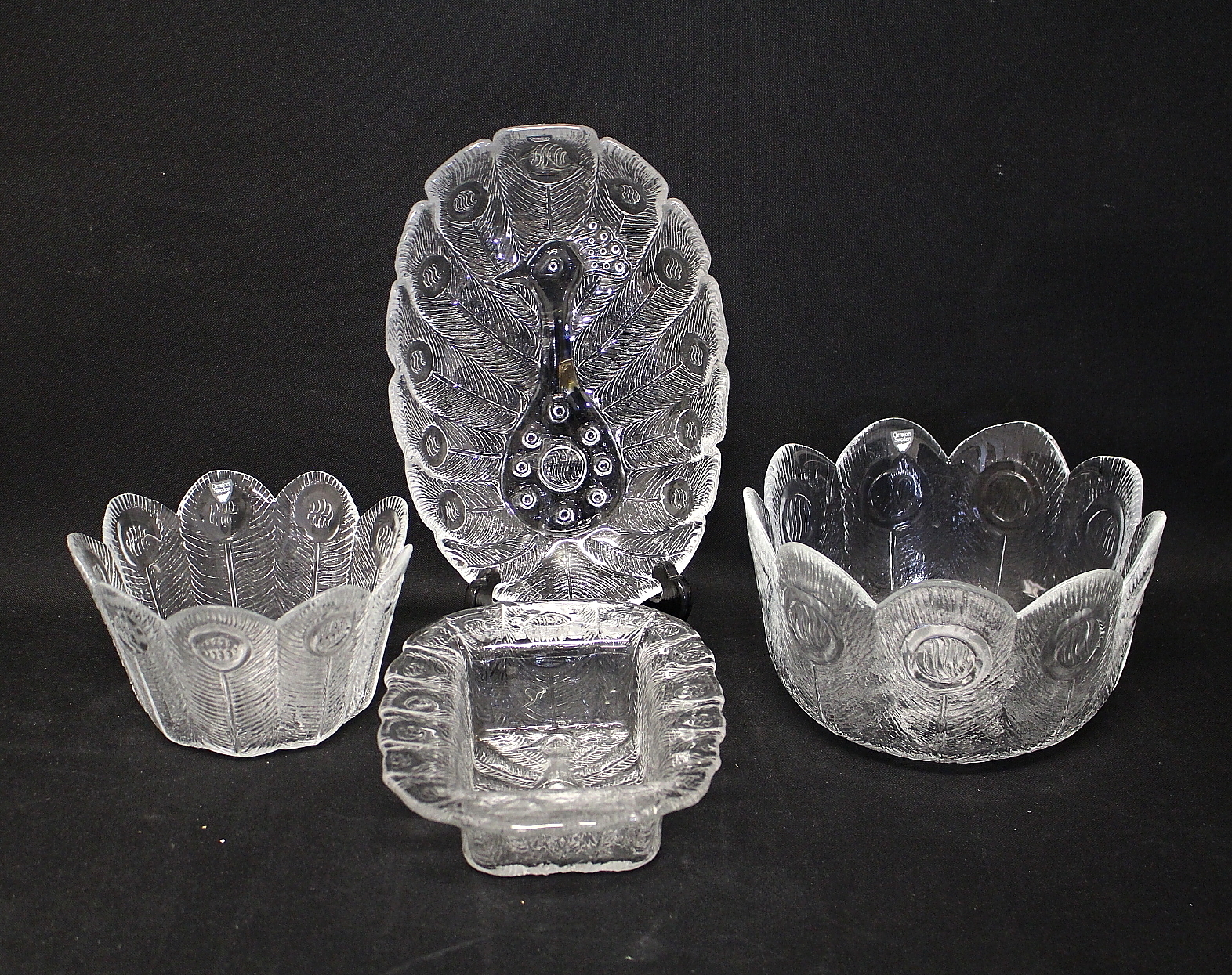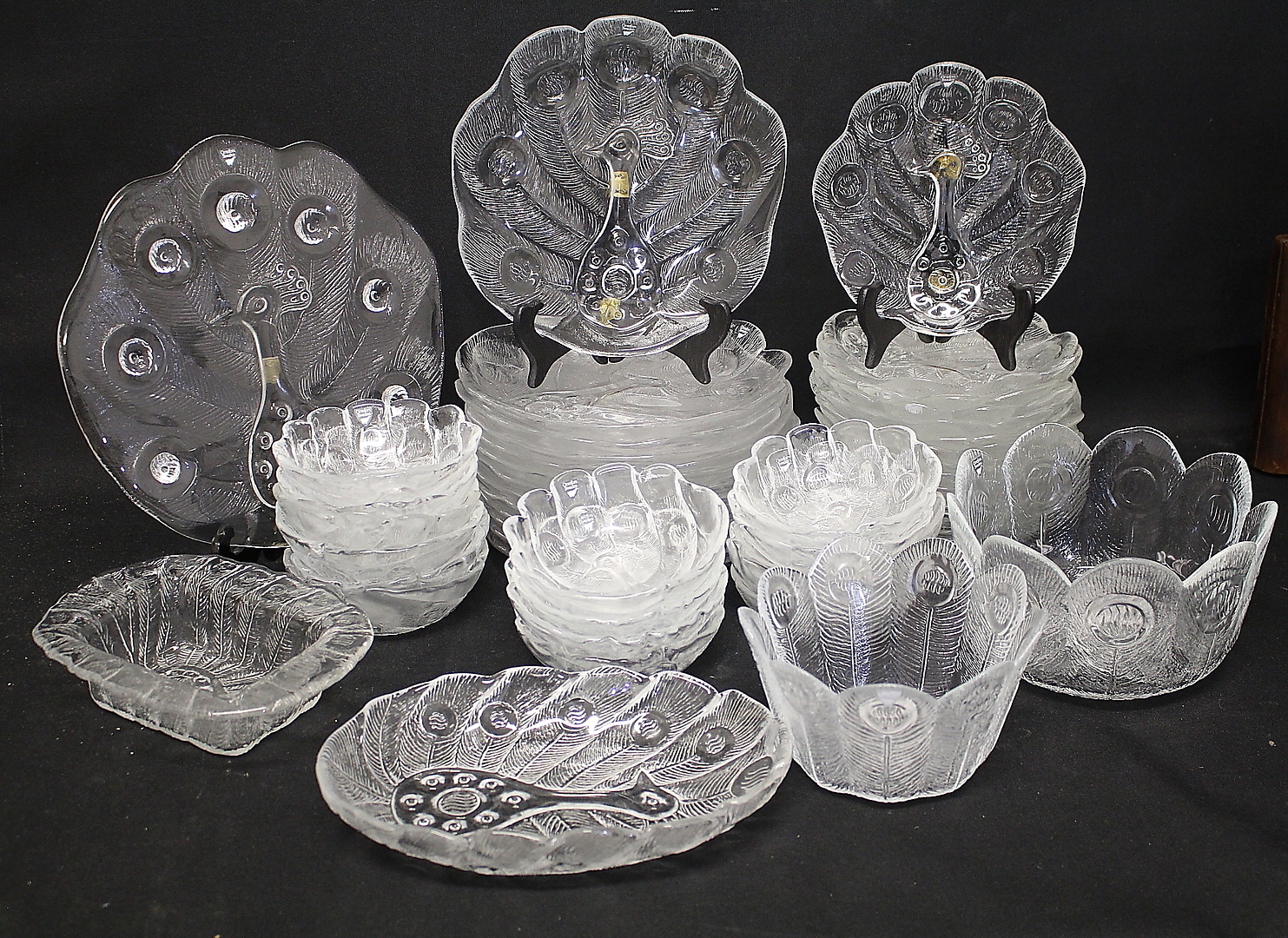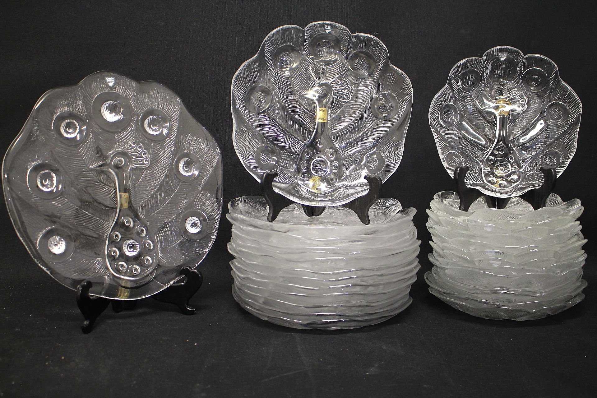 736188. SERVIS, 47 delar, glas " Påfågeln " Lars Hellsten Orrefors.