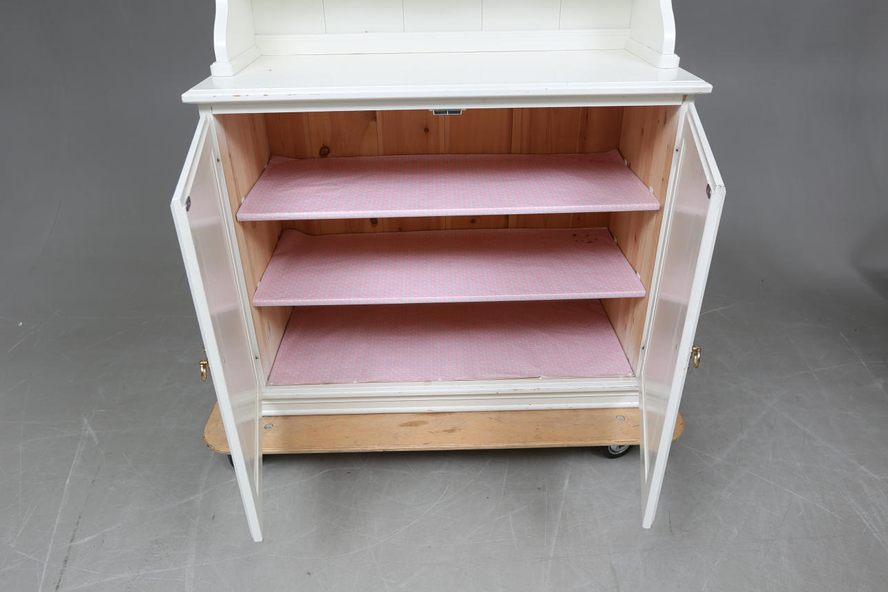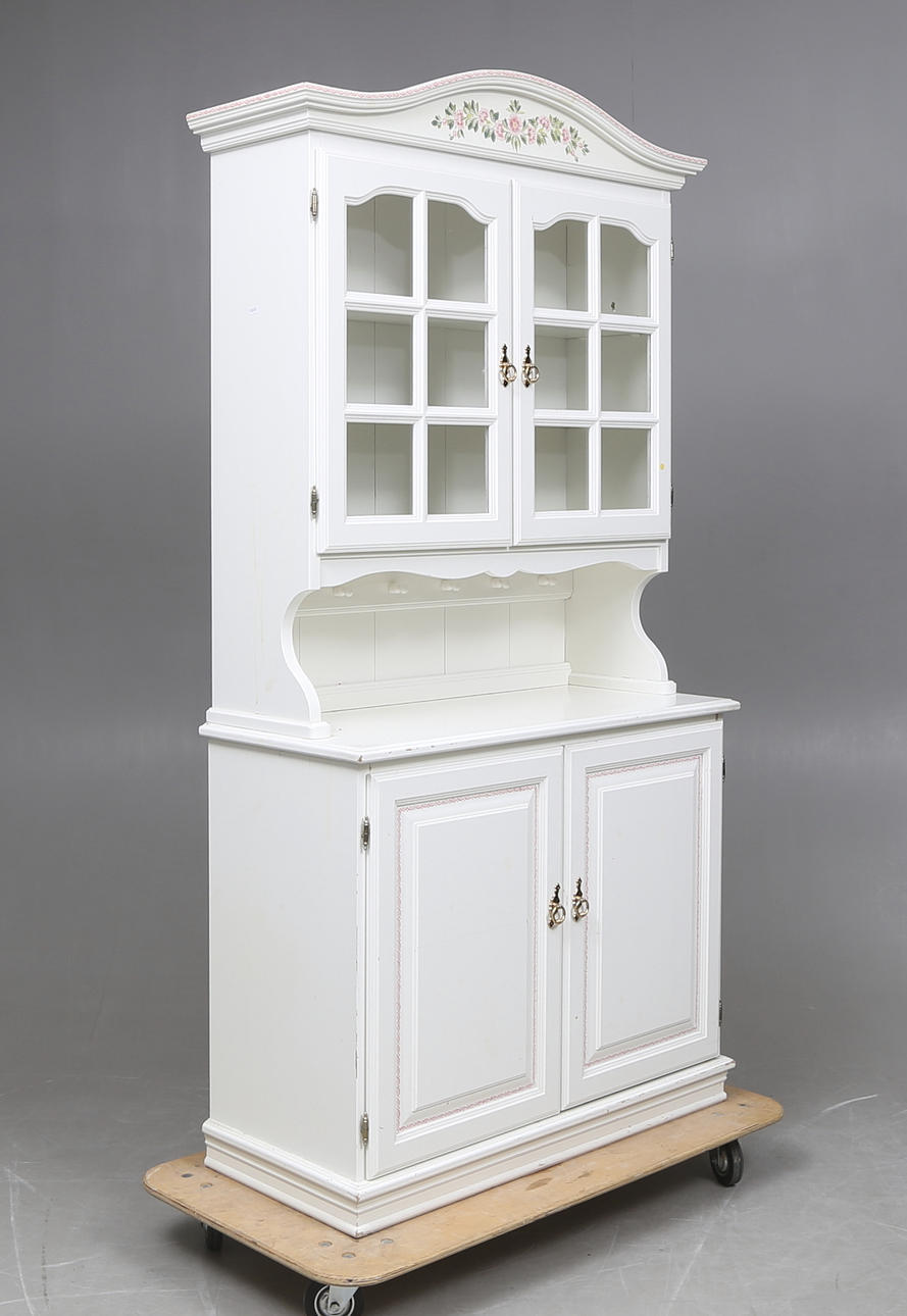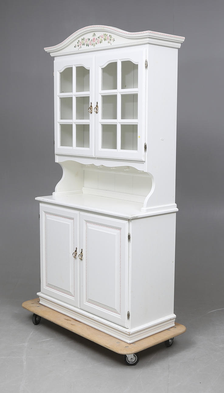 Överdel med vitrin, längd ca. 100, bredd 43, höjd 198 cm.
