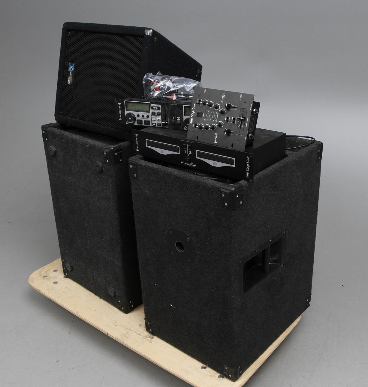 73837. DJ UTRUSTNING, högtalare samt mixerbord.