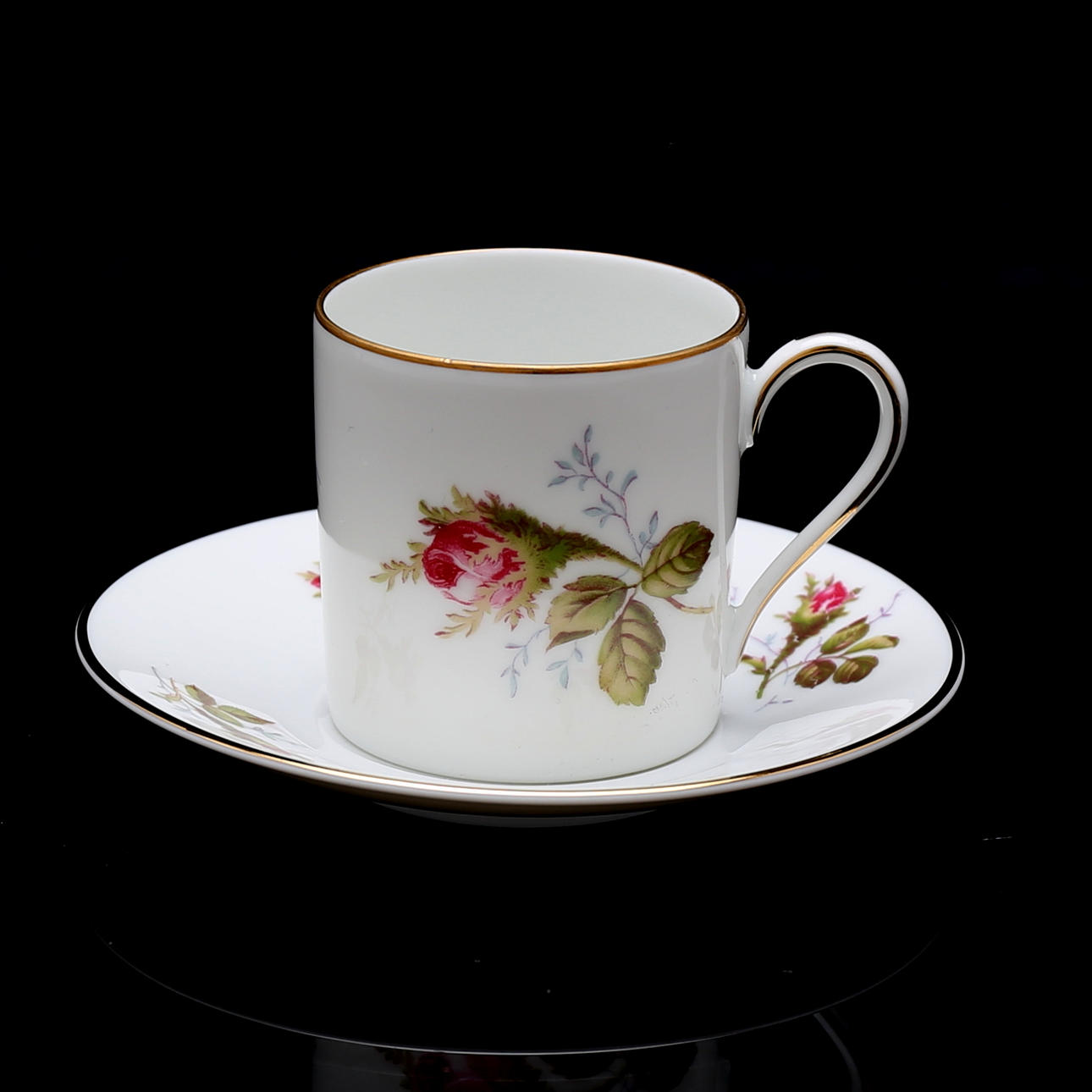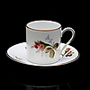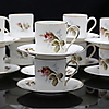 12 koppar med fat, koppens höjd 5 cm, fatets diameter 11 cm.