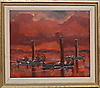 Båtar mot röd bakgrund, ca. 45x54 cm.