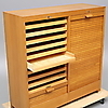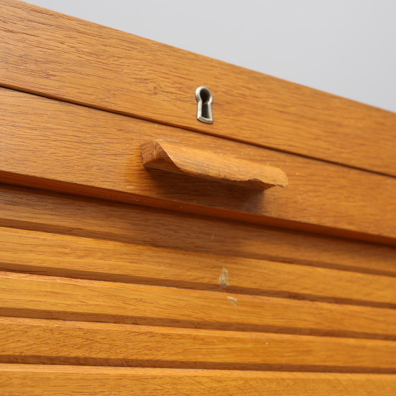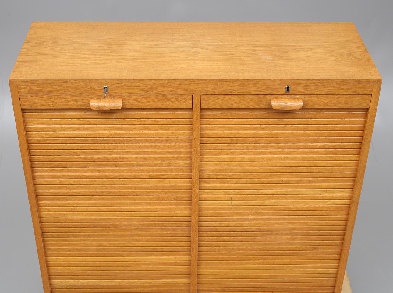 Fuktskador, bruksslitage. Ett handtag skadat. Höger lucka trög.