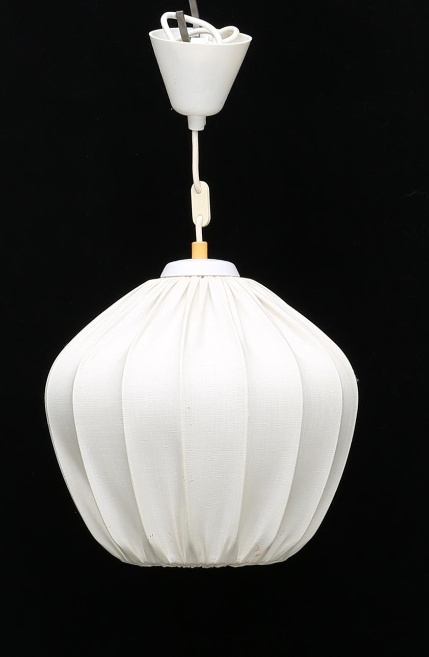 Tygskärm. Höjd exklusive sladd, ca 25 cm. Diameter ca 28 cm.
