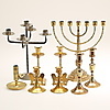 LJUSSTAKAR, 7 st. mässing. KANDELABRAR, 2 st.