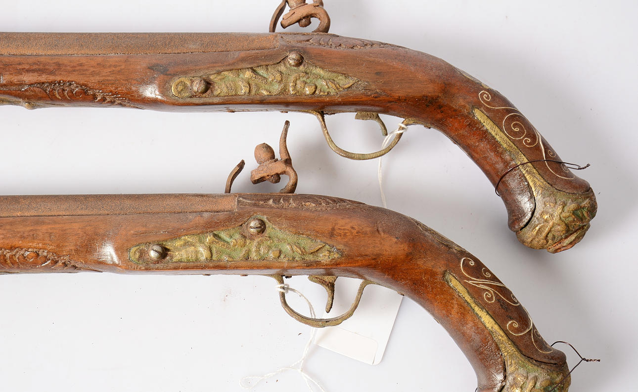 Kal 17 mm, mässingsbeslag, längd 42 cm.