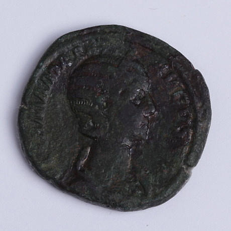 Mynt, brons, Sestertius, Julia Mamaea. Julia Mamaea var dotter till Julia Maesa och syster till Julia Soaemias. Hon var moder till Severus Alexander. Vikt 20,5 gram.