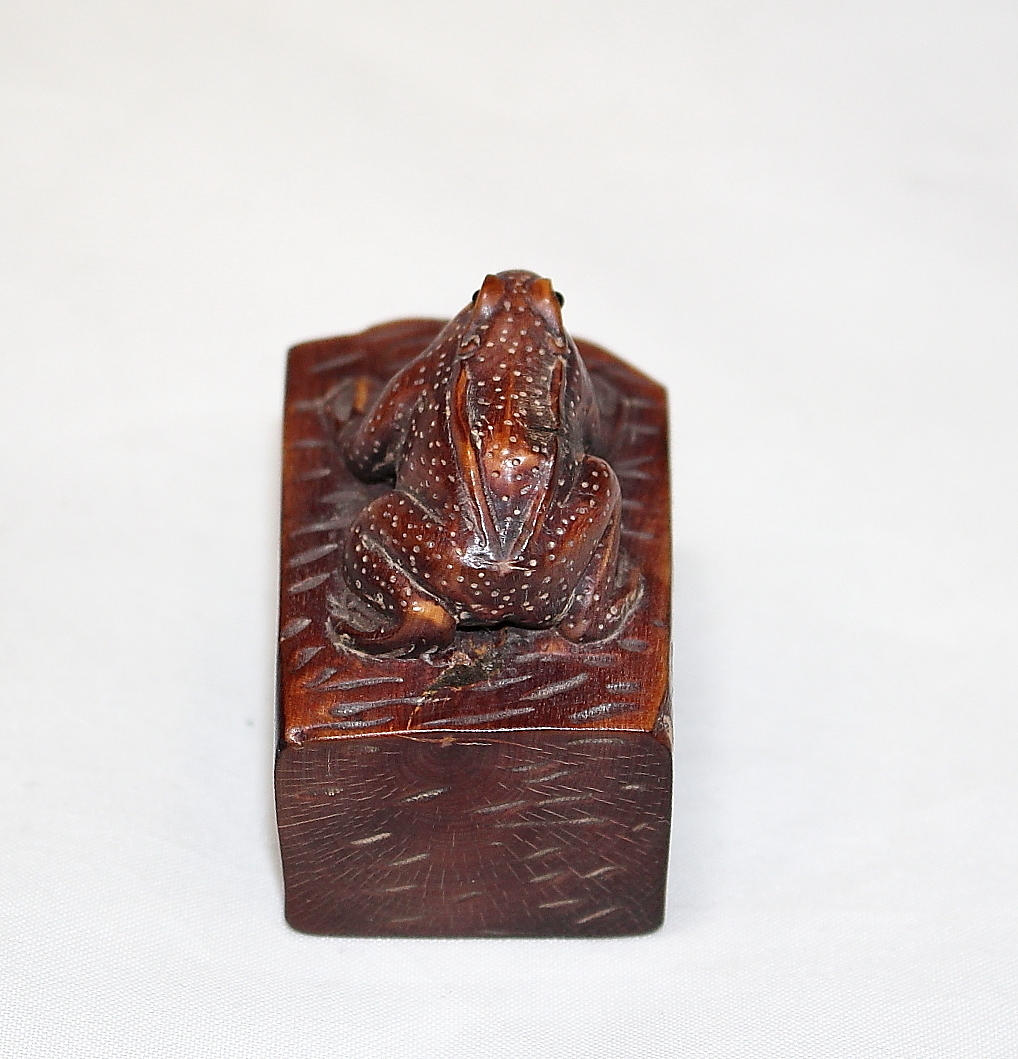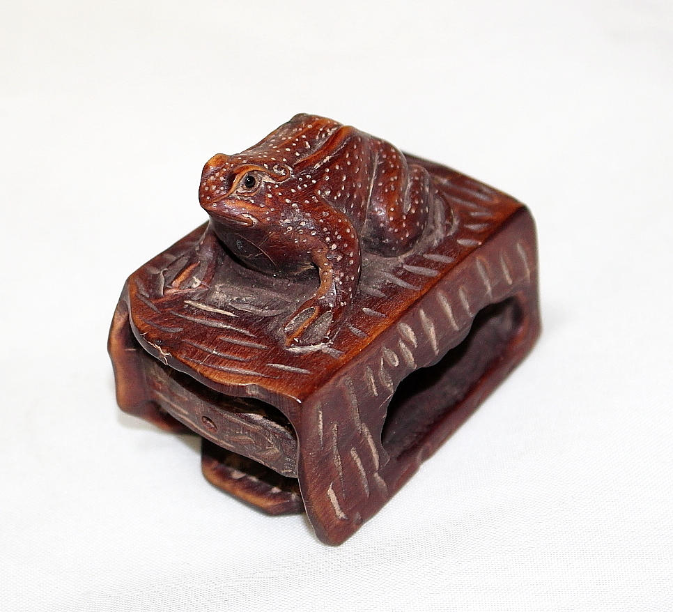 757709. NETSUKE, groda, signerad Nissho, Japan.