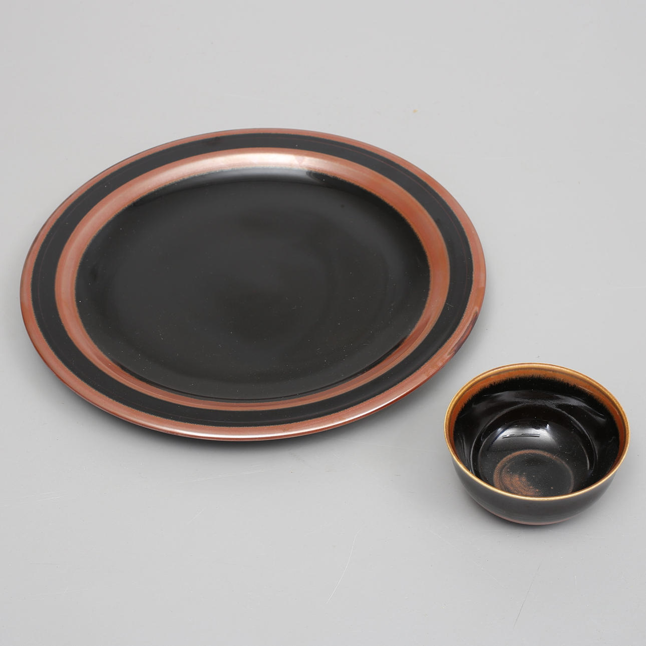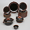 12 tallrikar diameter 26 cm. 3 assietter 24 cm. 10 assietter 21 cm. Fat 33,5 cm. Skål 12 cm. 2 terriner höjd 14 och 15 cm.