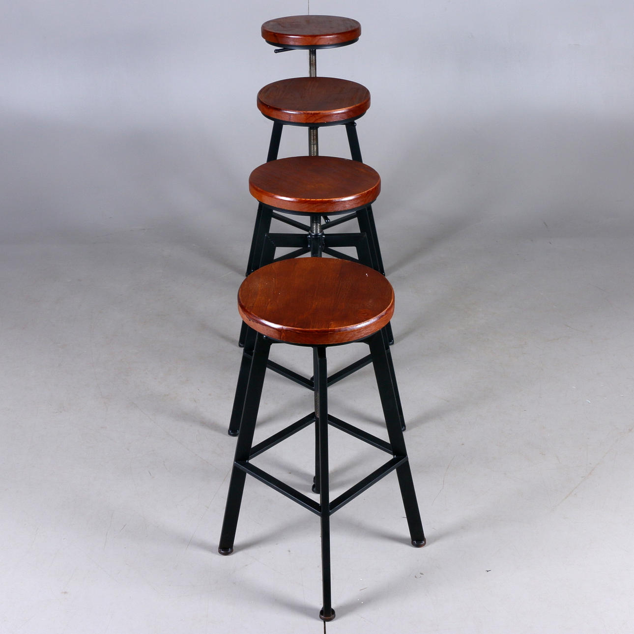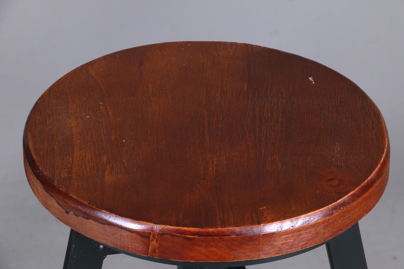 Höj- och sänkbara bar Sits i trä samt stomme i lackerad lättmetall Sitsens diameter 30, höjd 63-83 cm.