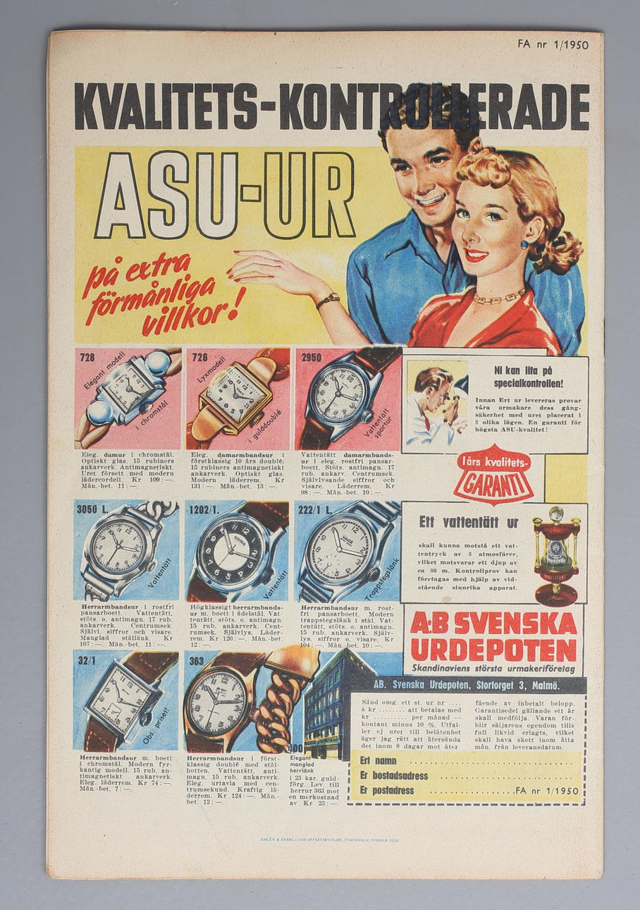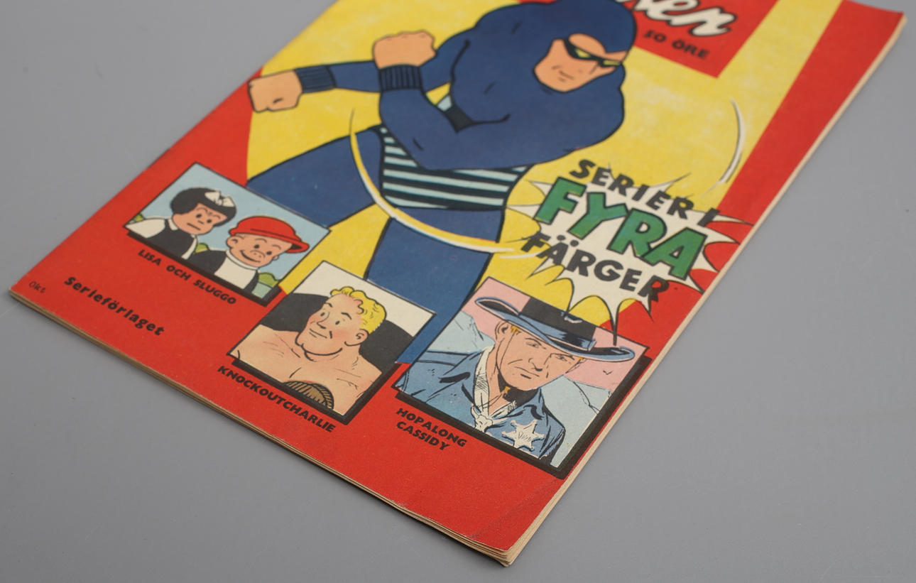 Fint exemplar med ett fåtal rygglipor, vikmärke på framsidans ena hörn.