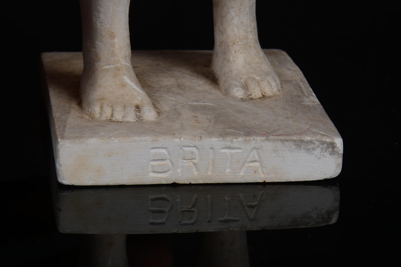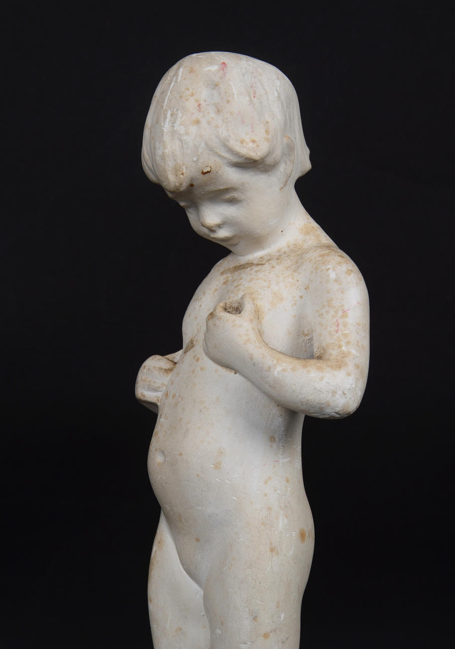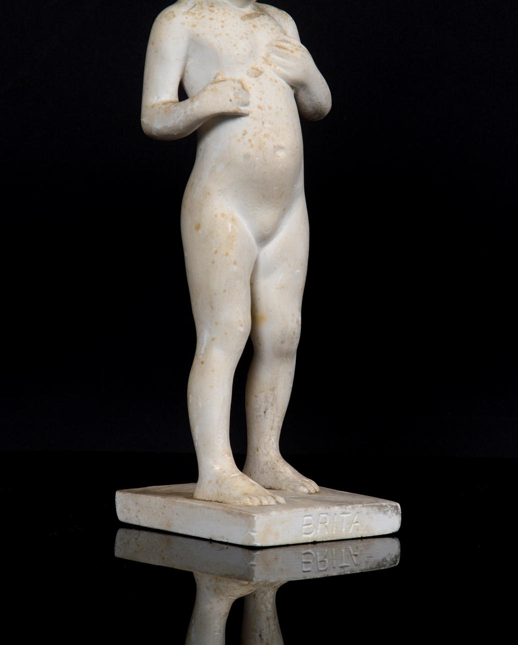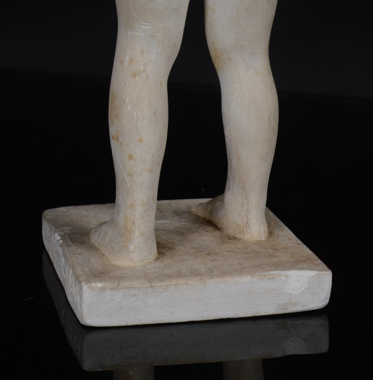Missfärgningar på gips, slitage, mindre nagg på foten.