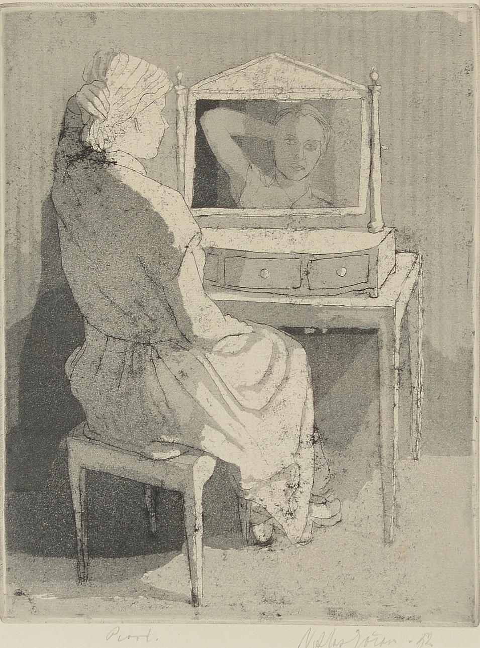 Sittande flicka. Signerad, betitlad samt daterad -52. 29x22 cm.