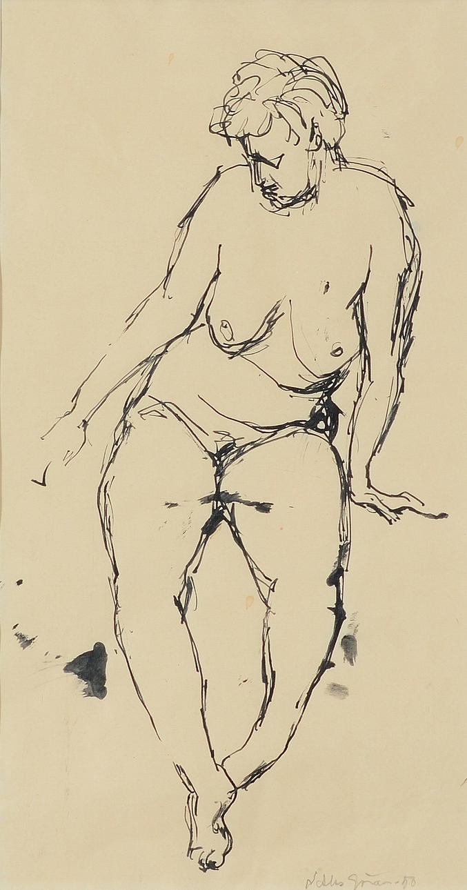Modellstudie. Signerad, betitlad samt daterad -58. 40x21 cm.