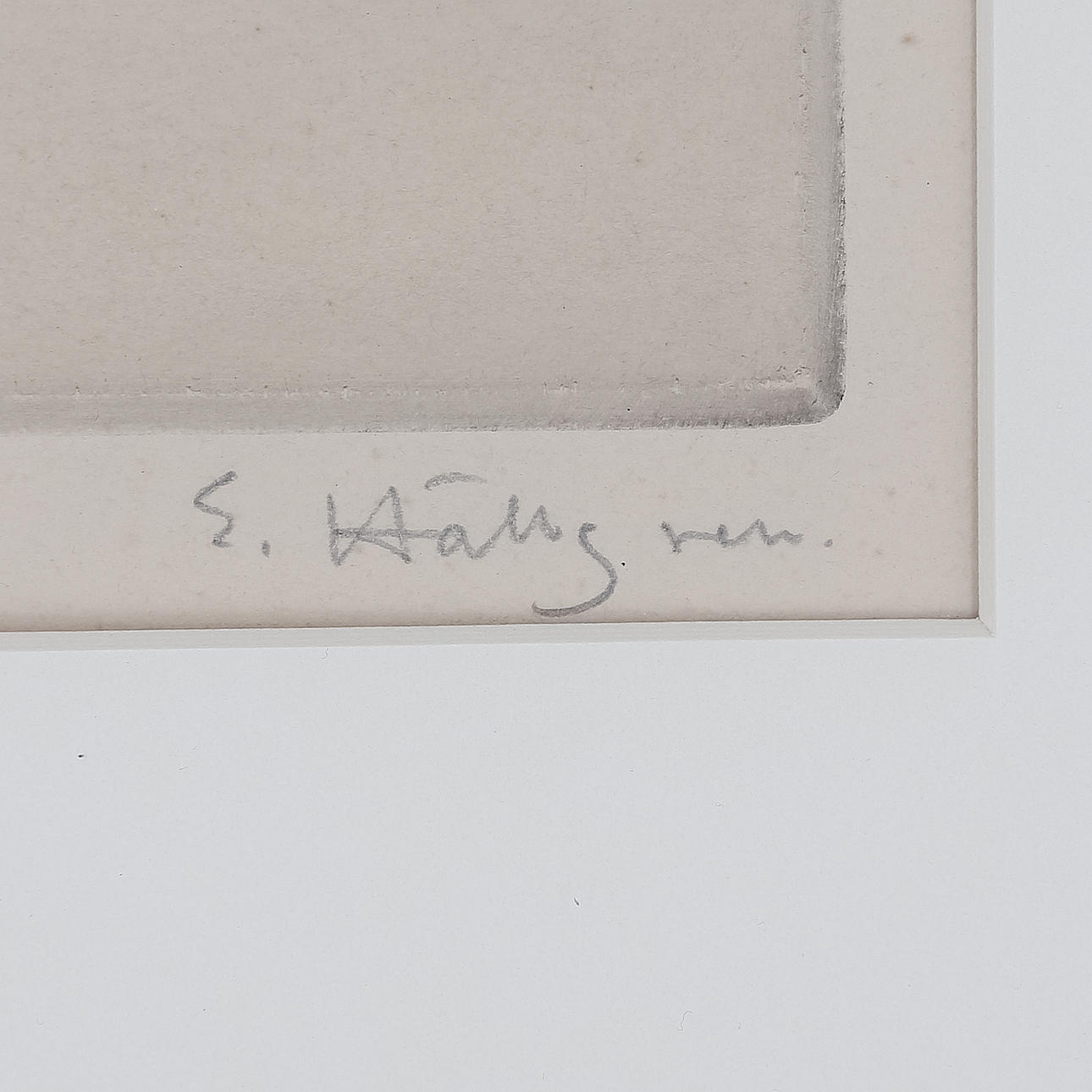 ERNST HÄLLGREN. Porträtt, etsning, signerad.