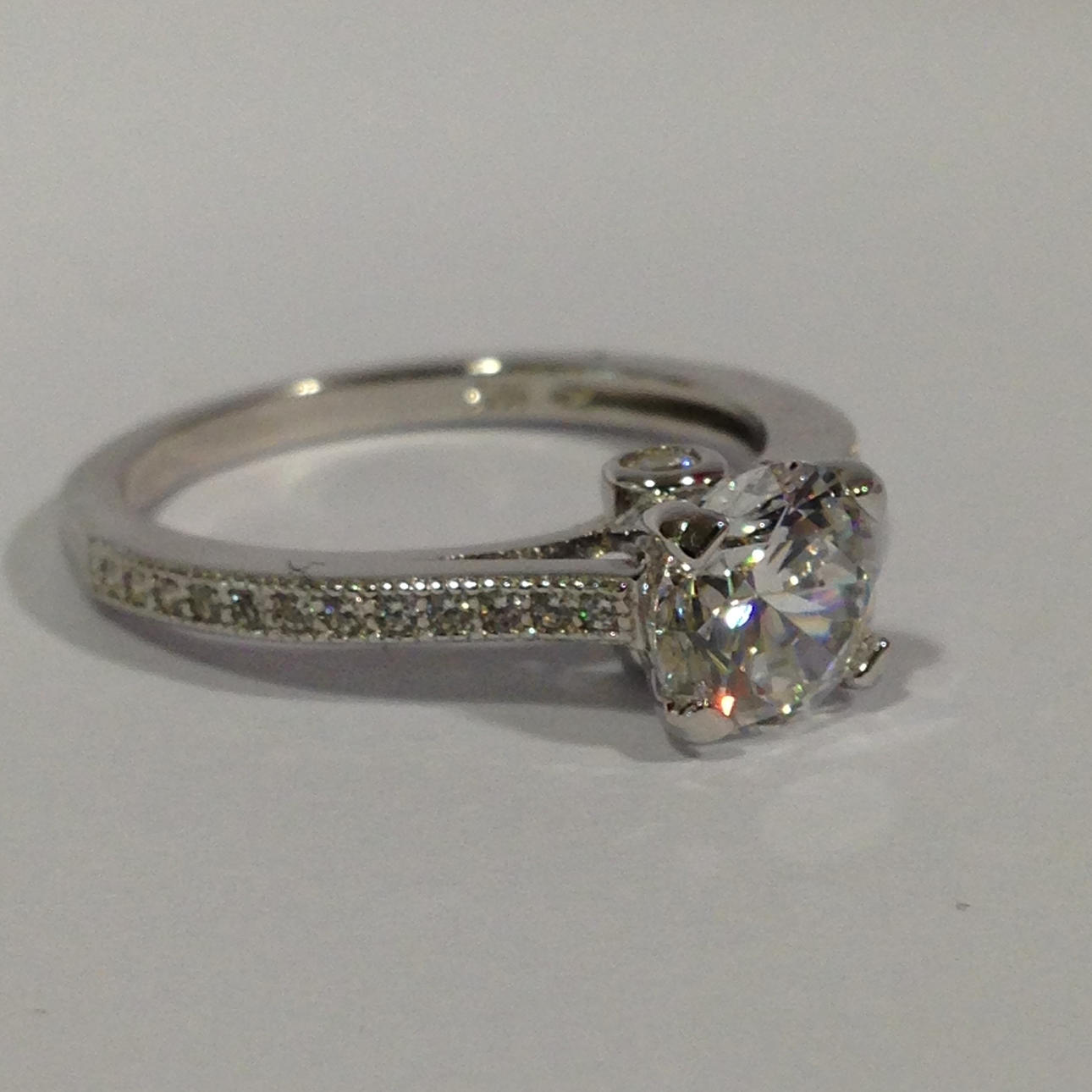 Den första ringen är en solitaire ring som är inställd med en central vit rund briljant cut cubic zirconia som i en fyra klo montera.
